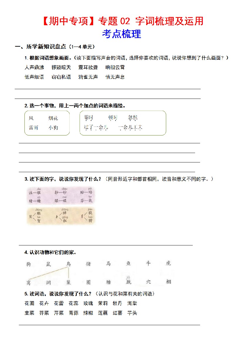 专题 02字词梳理及运用(考点+试题)四年级语文上册期中专项复习(统编版)