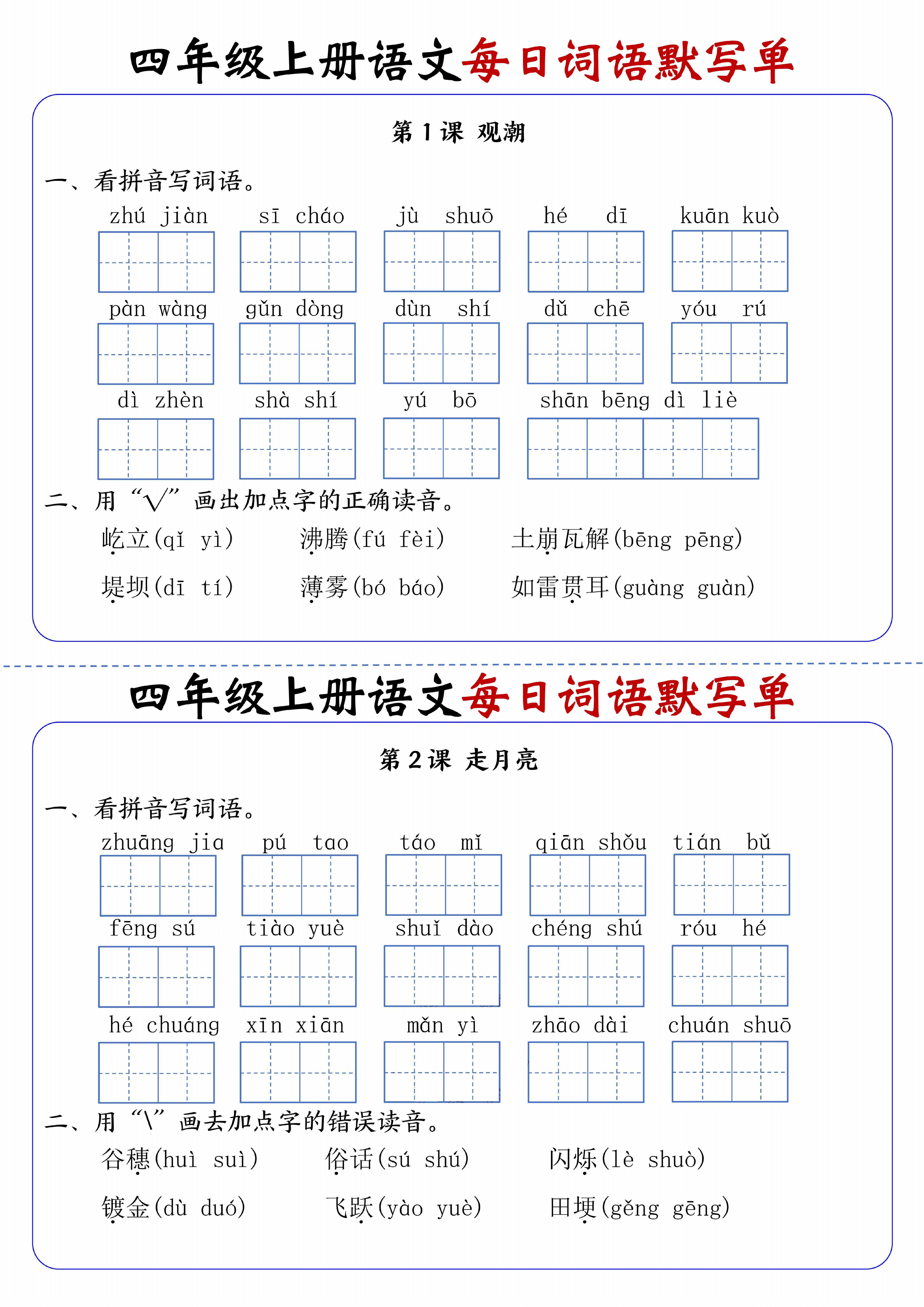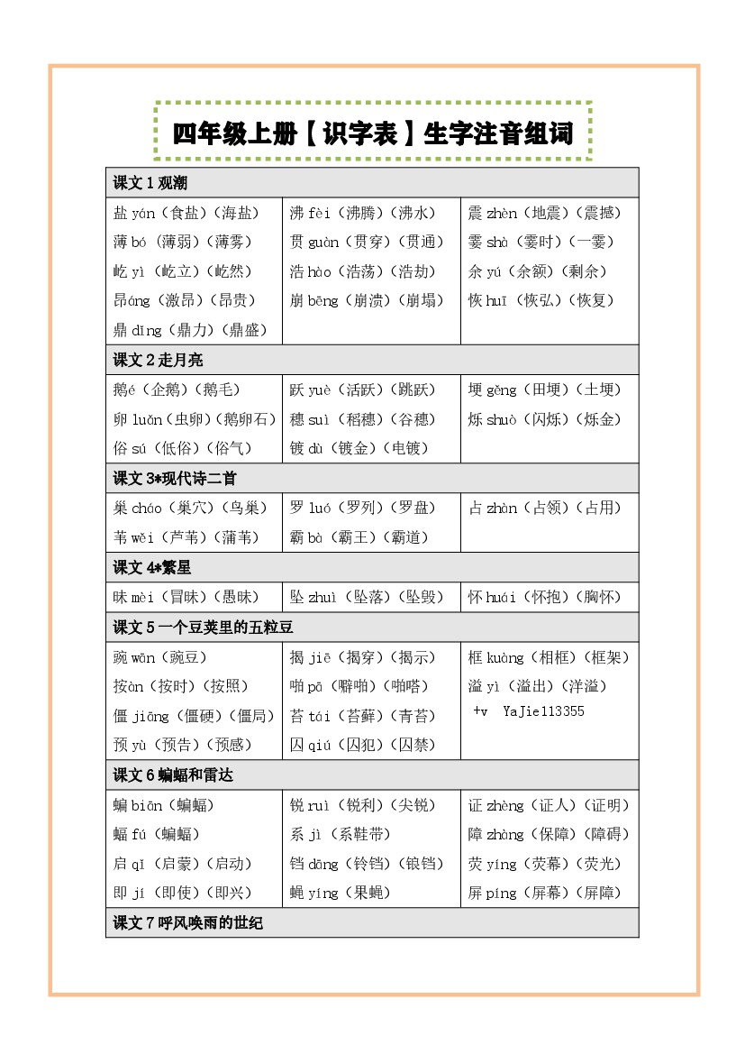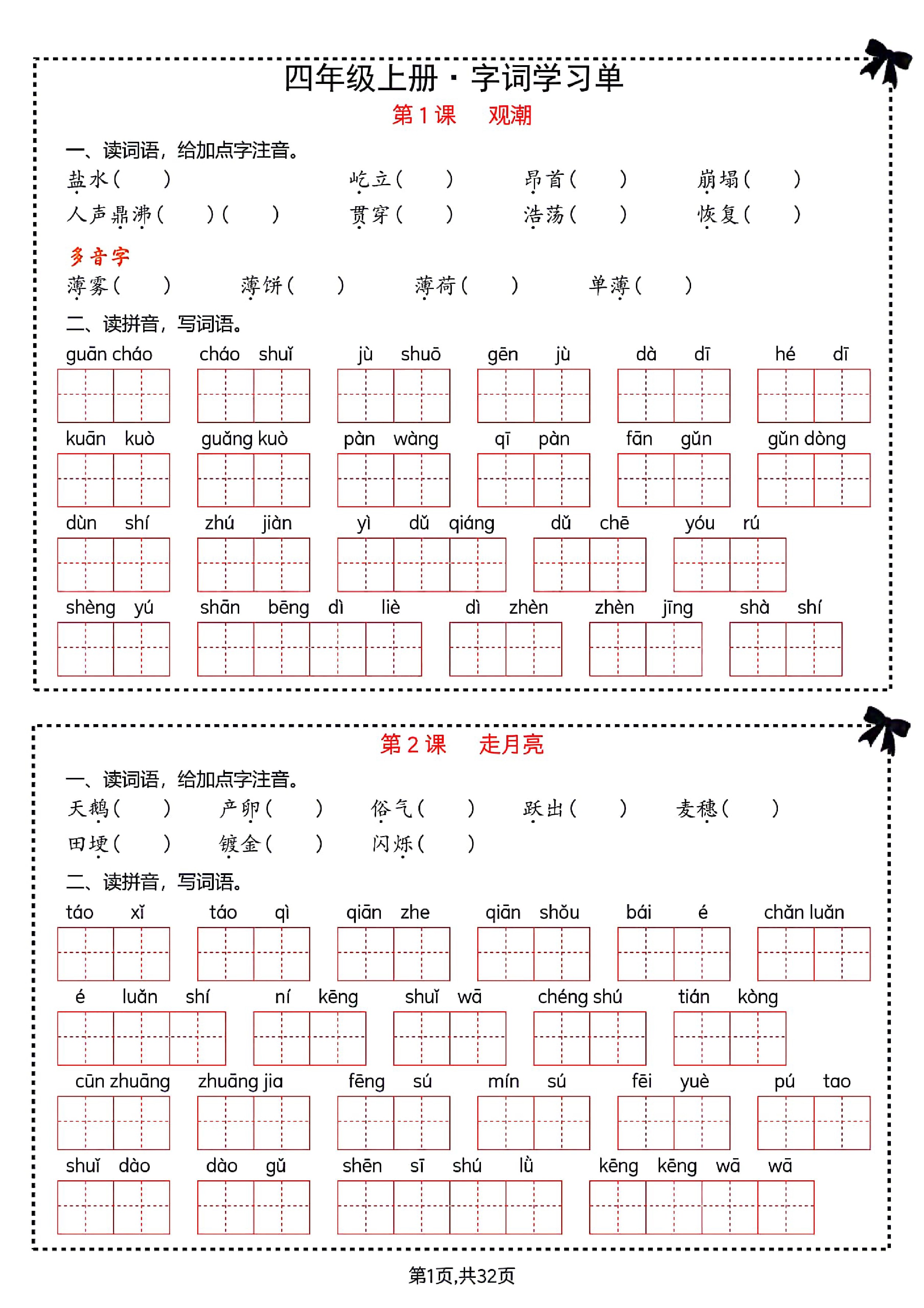 四上1-27课字词学习单+1-8单元知识通关(32页)