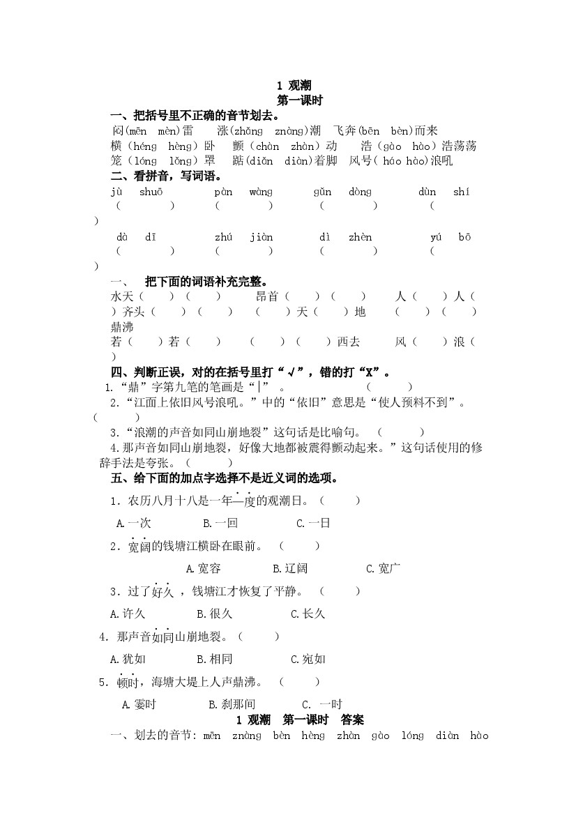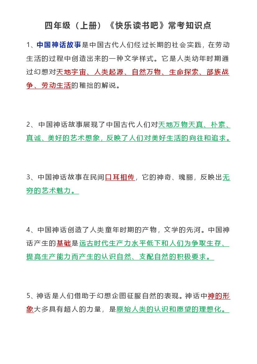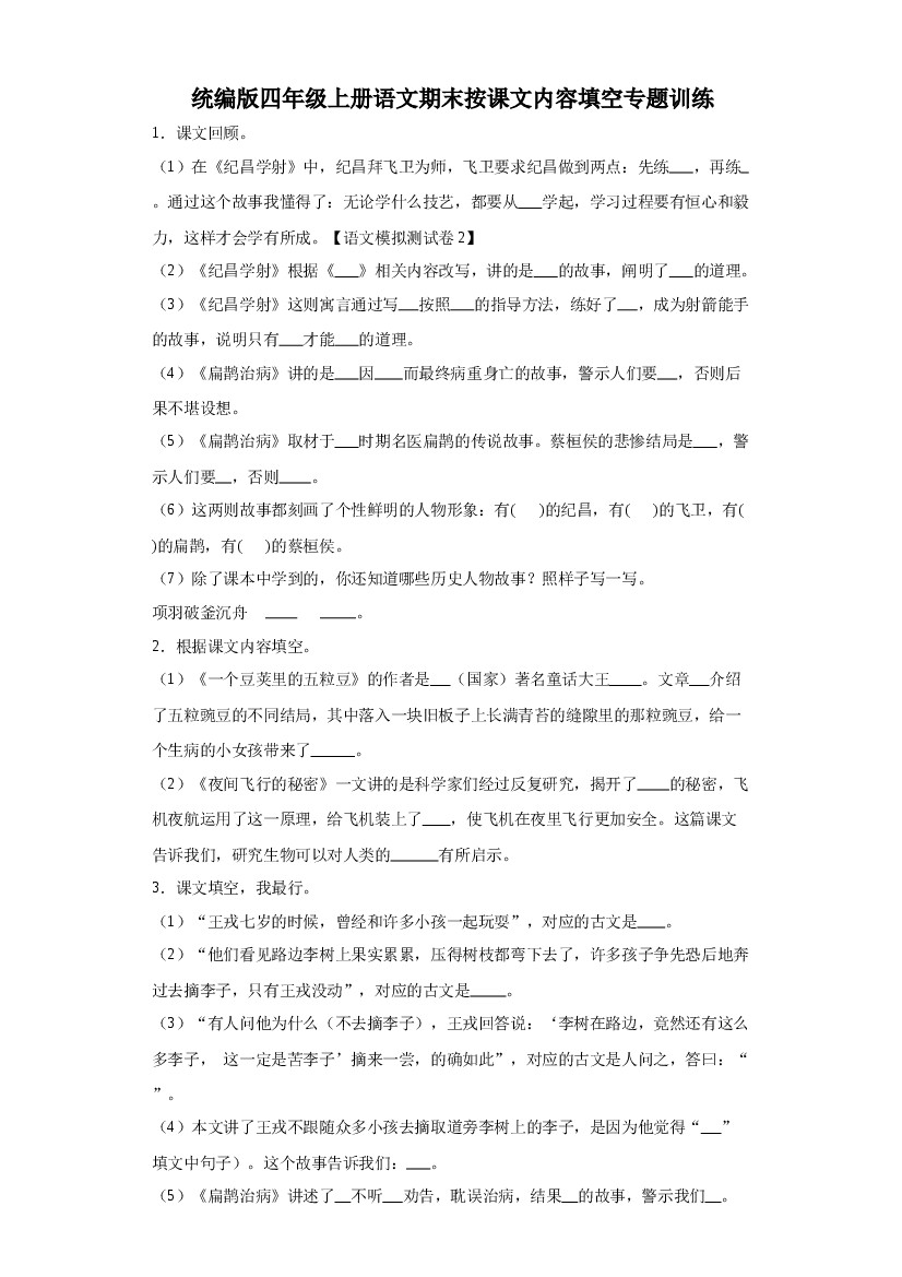 【按课文内容填空】统编版四年级上册语文期末按课文内容填空专题训练(含答案)