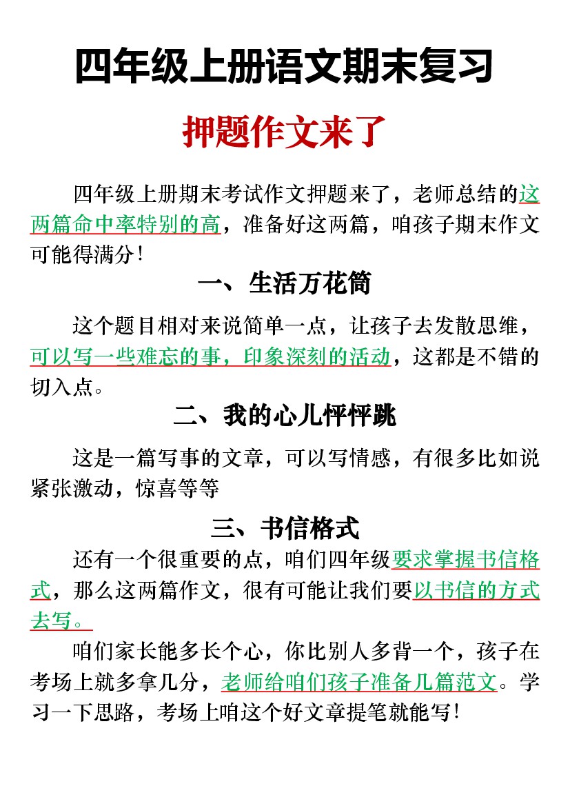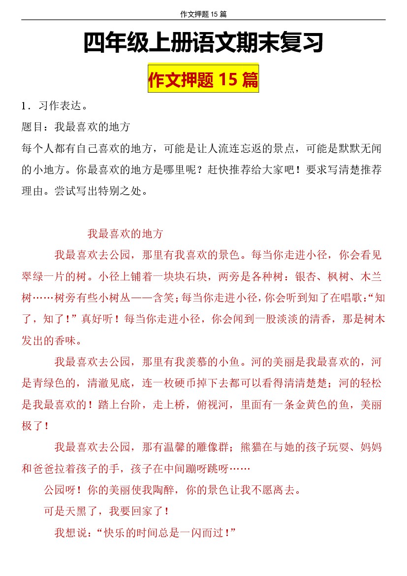 【期末作文押题】四年级上册语文期末作文押题15篇