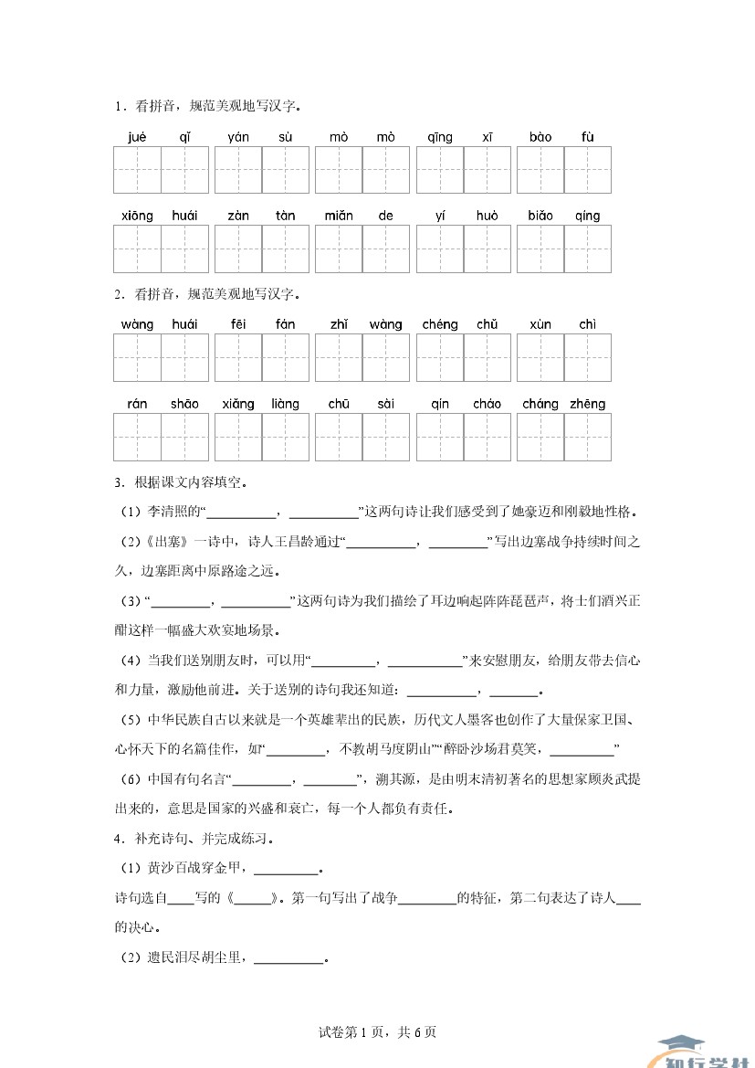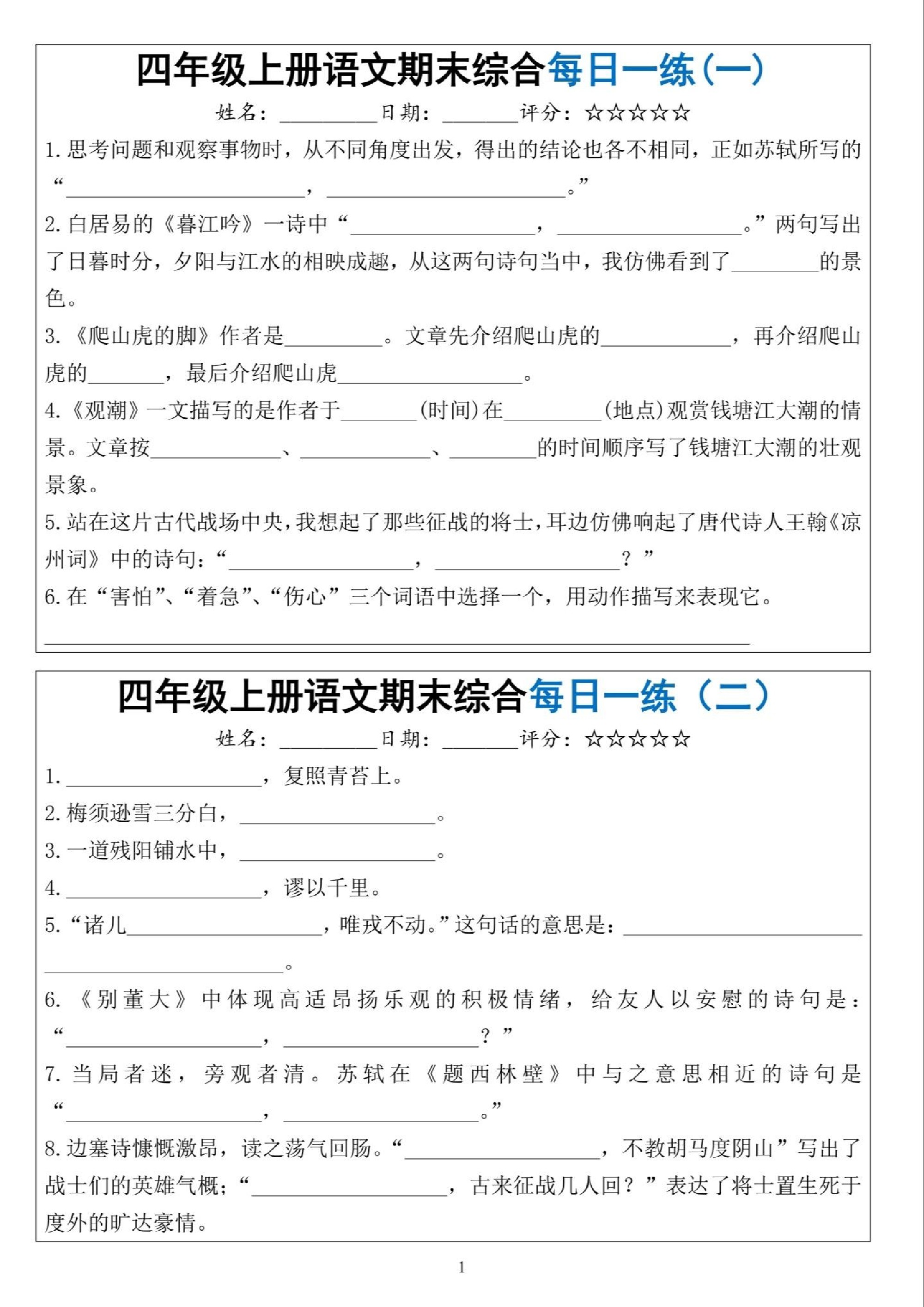 【2025秋新版】四年级上册语文期末复习必背日积月累填空练习