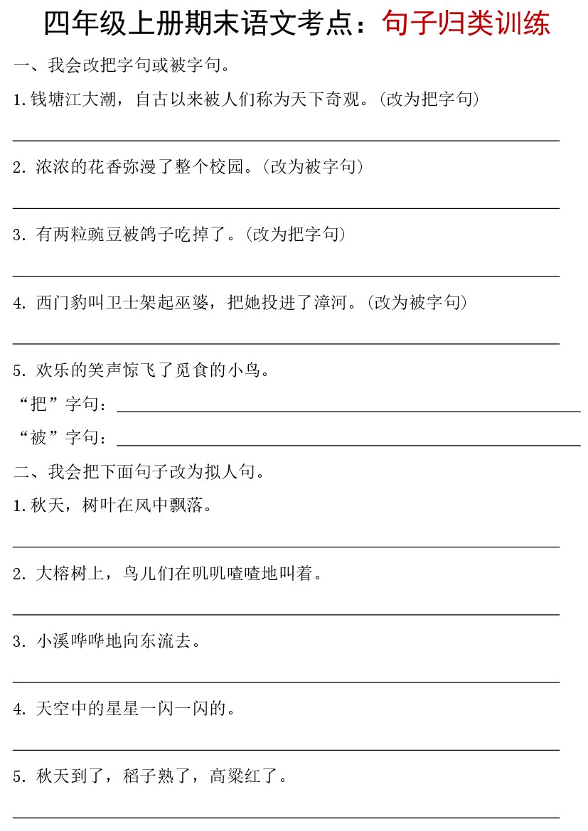 【期末复习专练写作】 四年级语文上学期期末复习题型专练