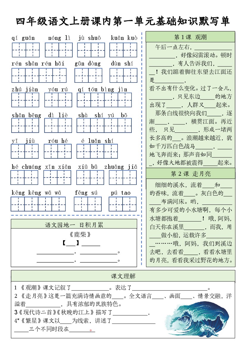 【按课文内容填空】统编版四年级上册语文期末按课文内容填空专题训练(含答案)