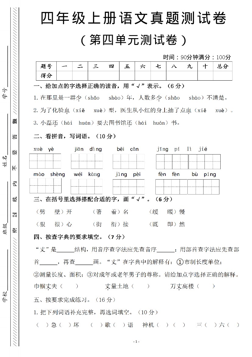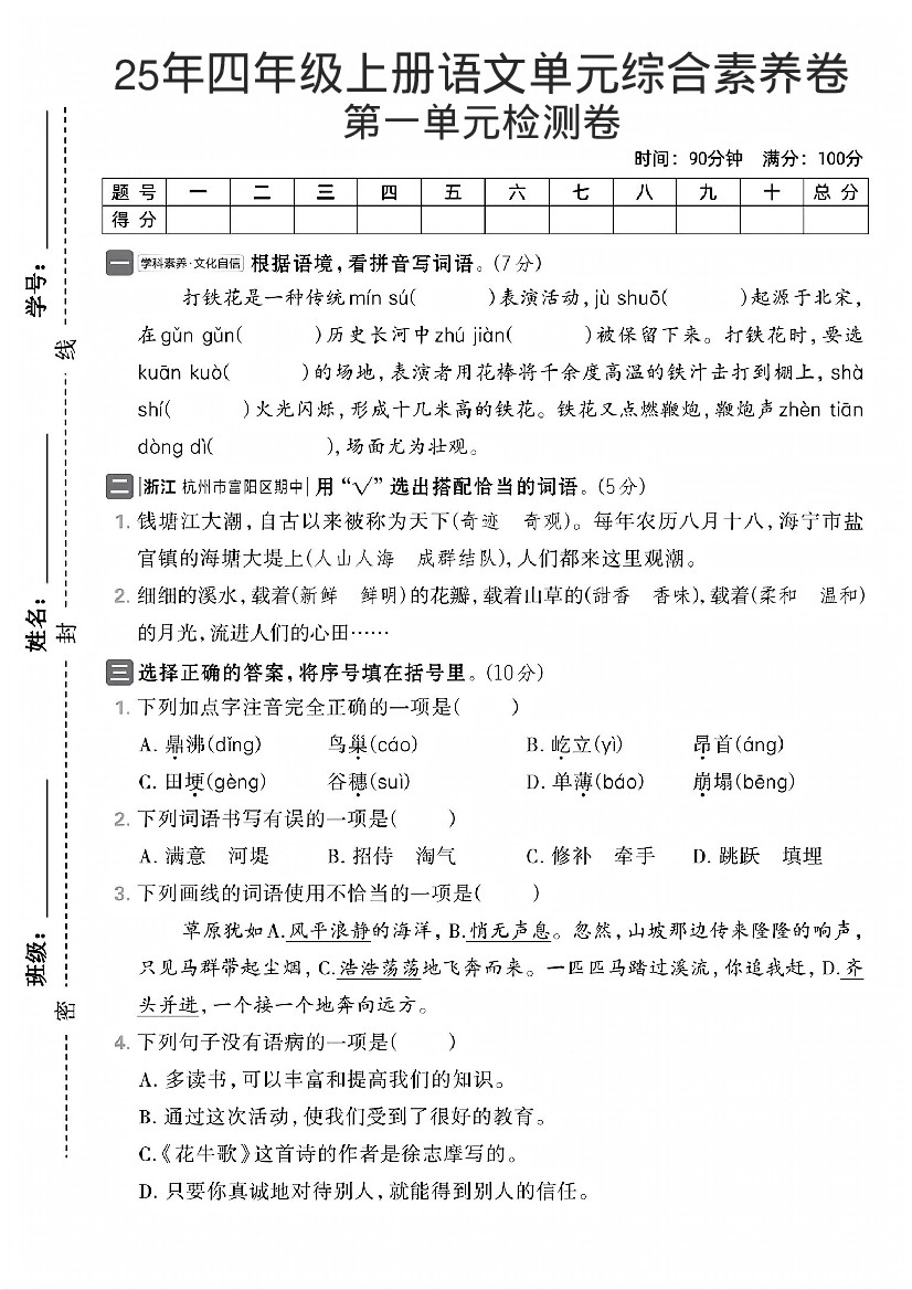 25年四年级上册语文单元综合素养卷