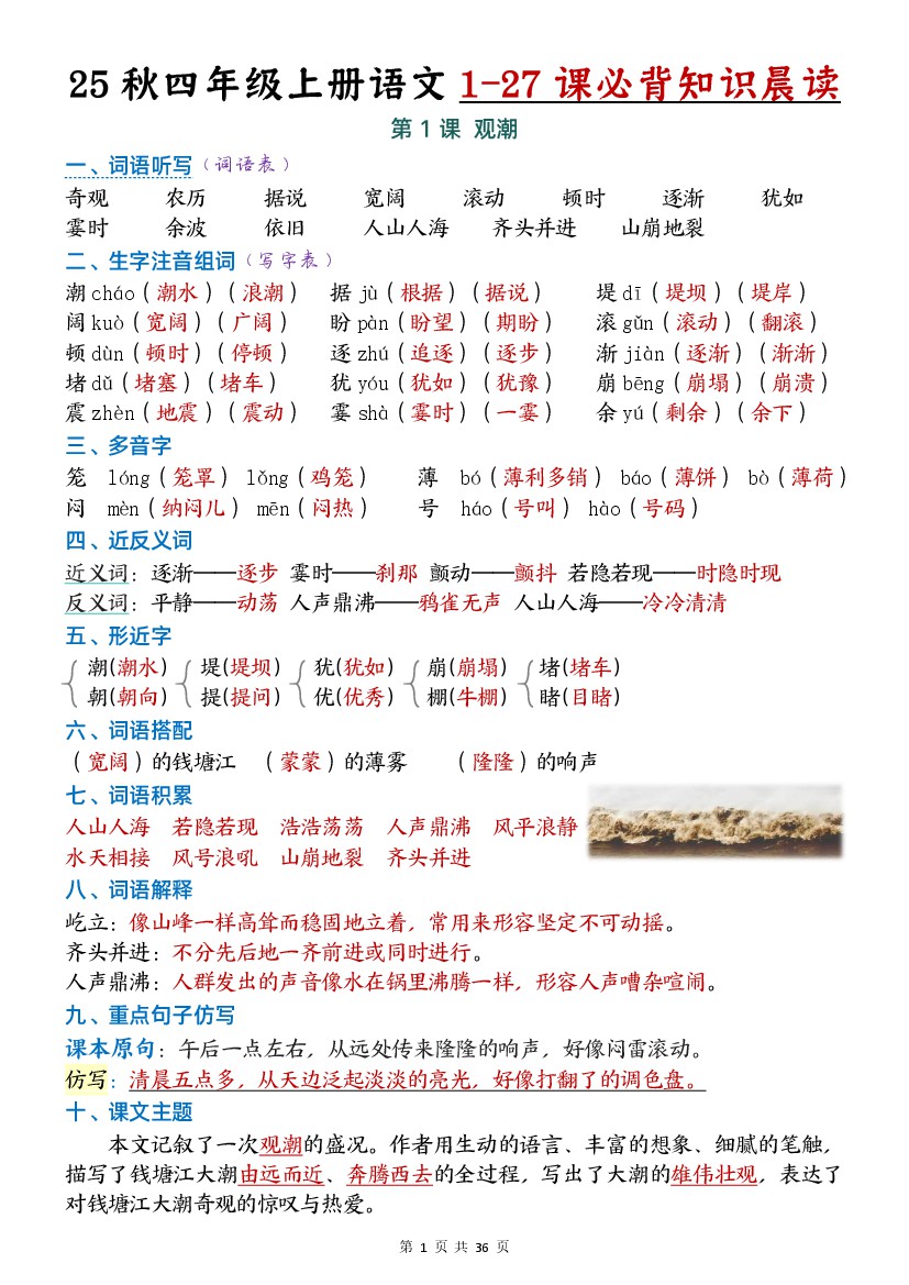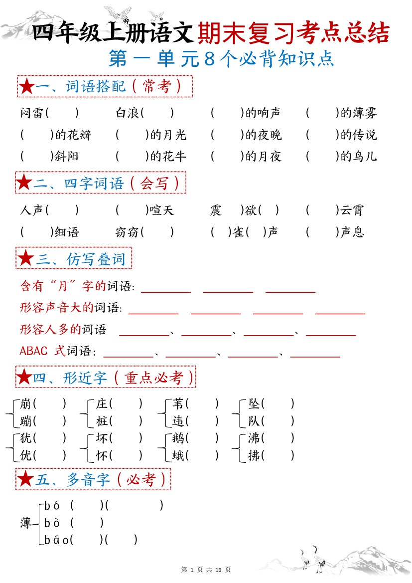 四年级(上)语文必背知识晨读