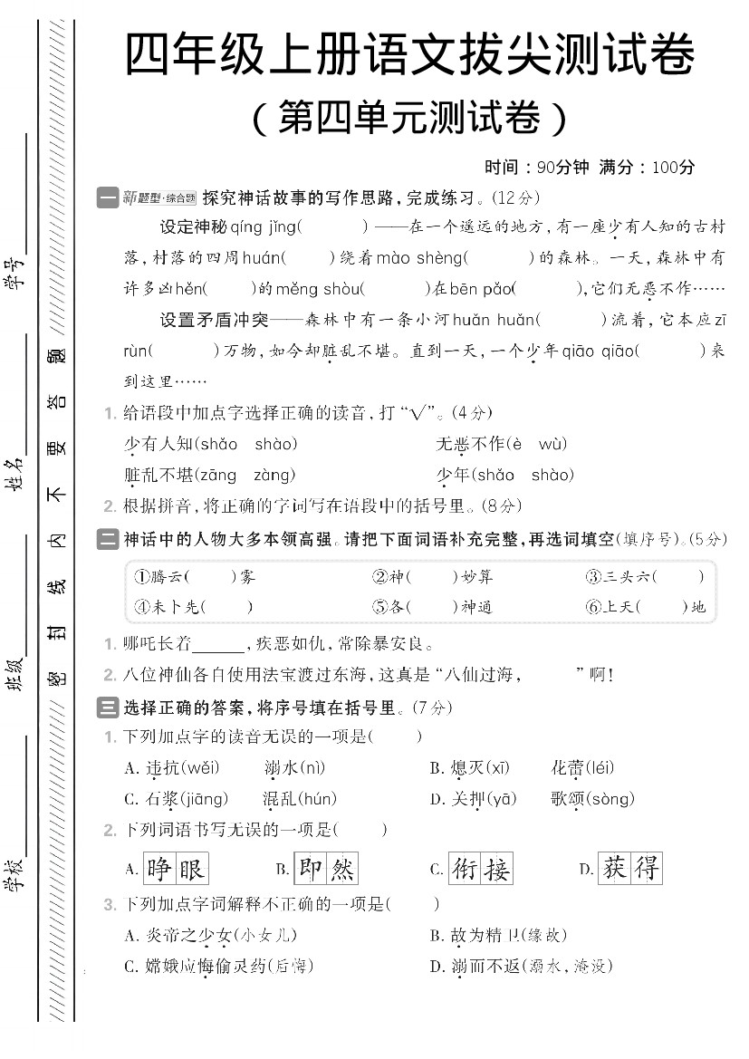 四年级(上)语文第四单元情境测试卷