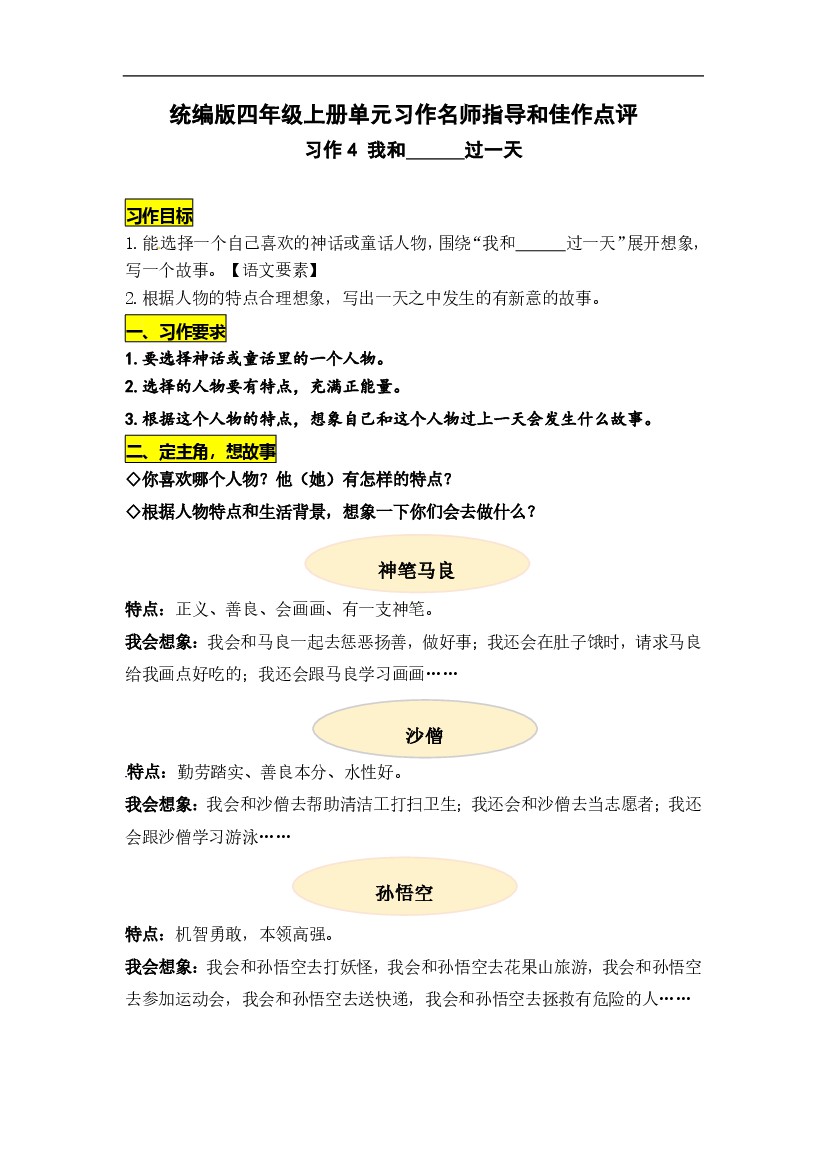 人教部编版四年级语文上册第4单元习作《我和________过一天 》名师指导和佳作点评(10篇)