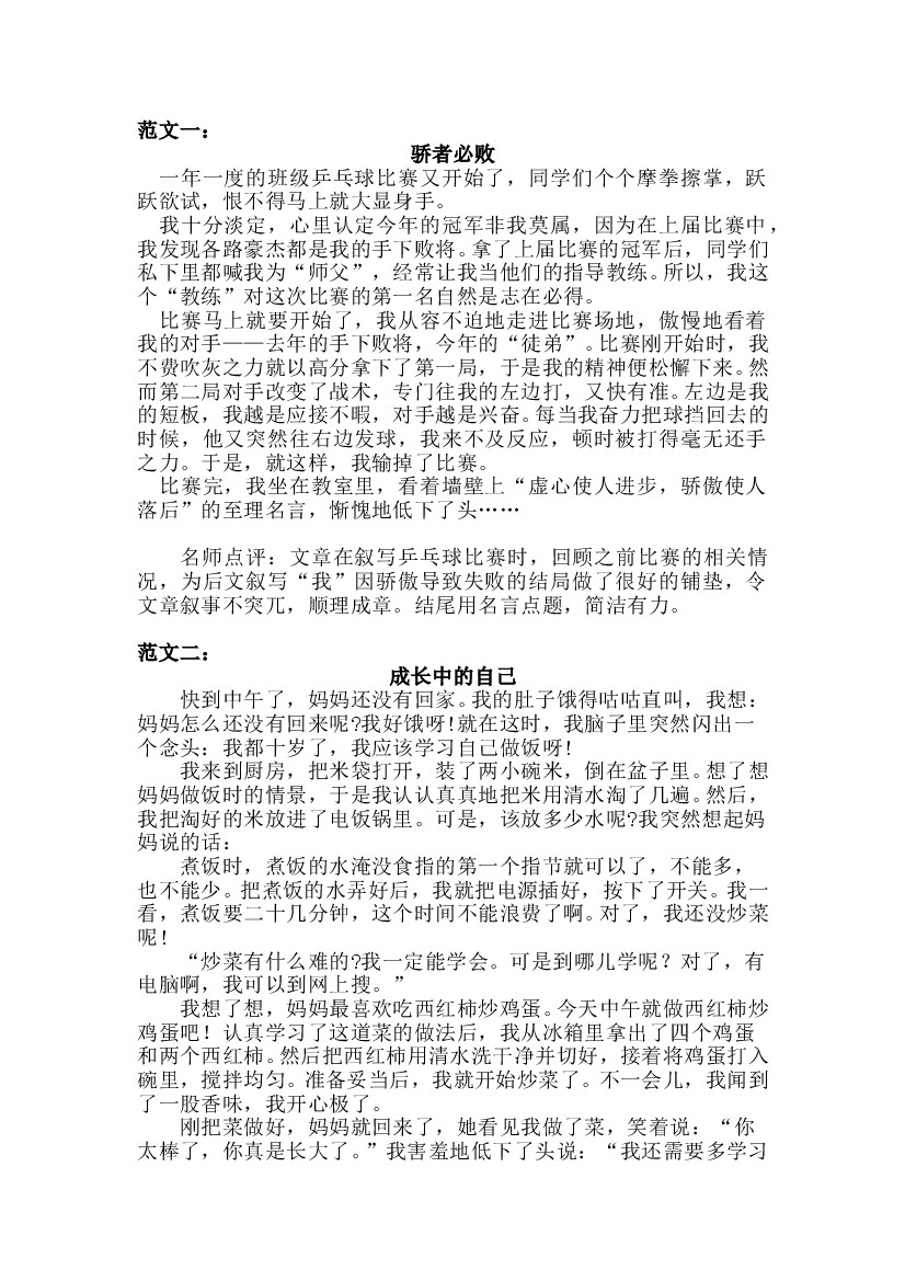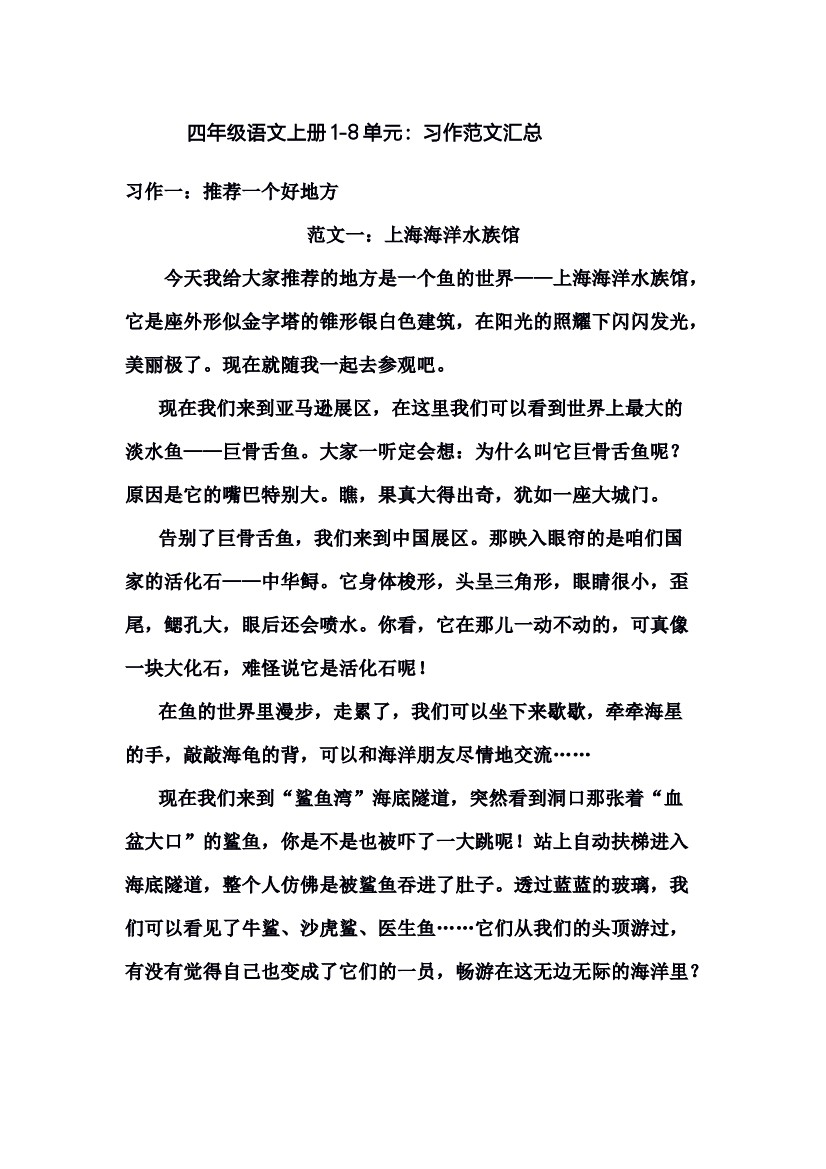 四(上)语文1-8单元习作范文汇总
