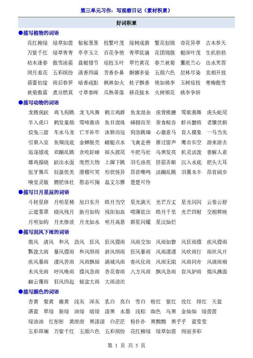 25年秋【四上语文】第3单元习作《写观察日记》(素材积累)