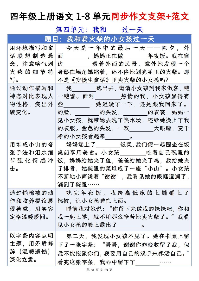 四年级上册语文4单元作文支架+优秀范文