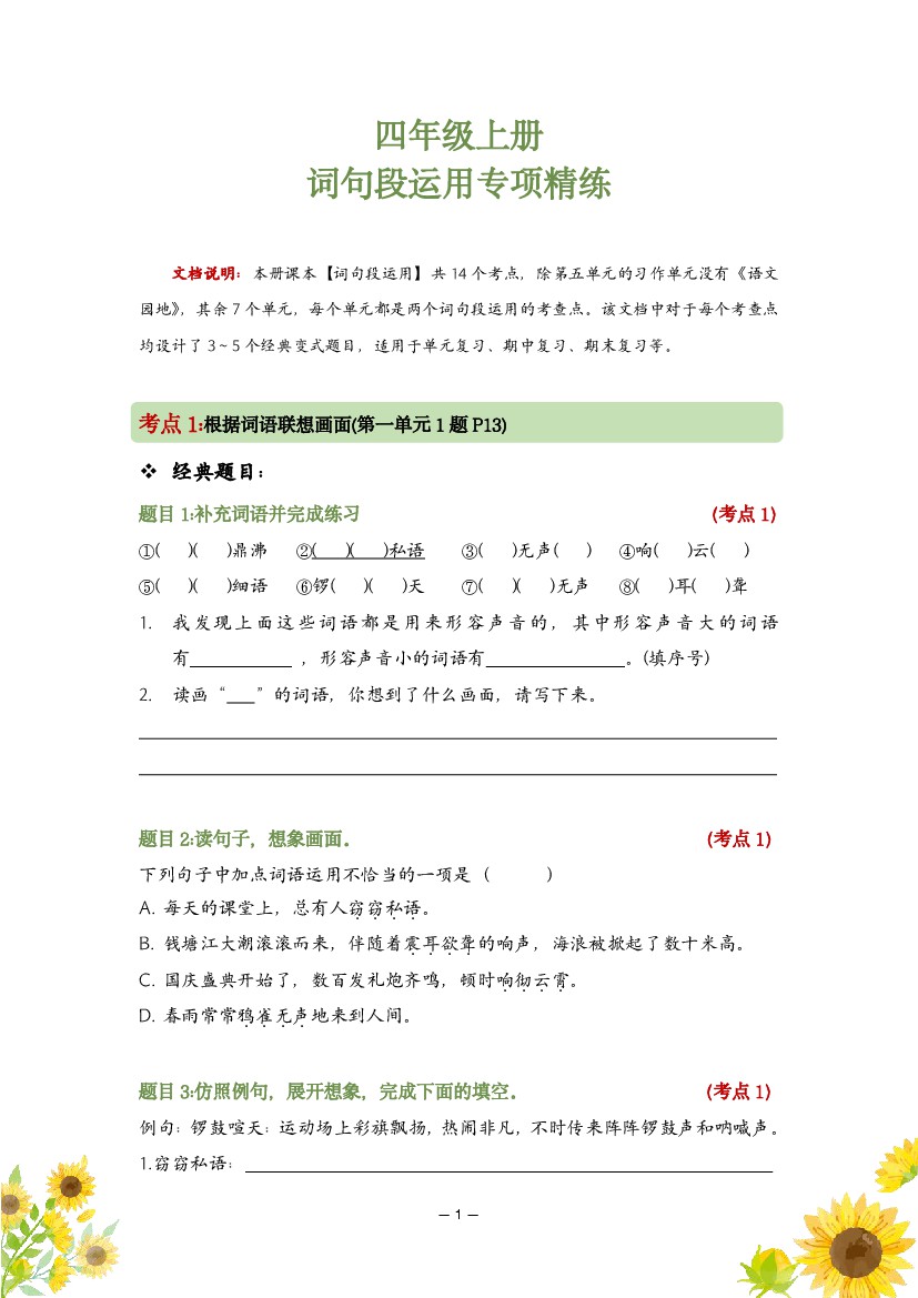 四(上)语文词句段运用专题训练