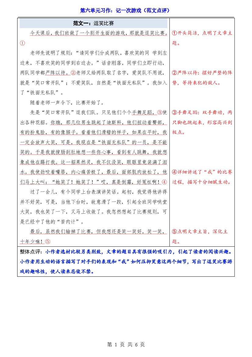 25年秋【四上语文】第6单元习作《记一次游戏》(范文点评)