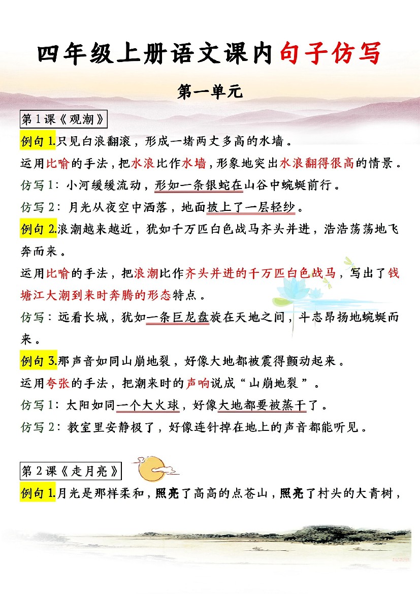 四(上)语文每课课内句子仿写