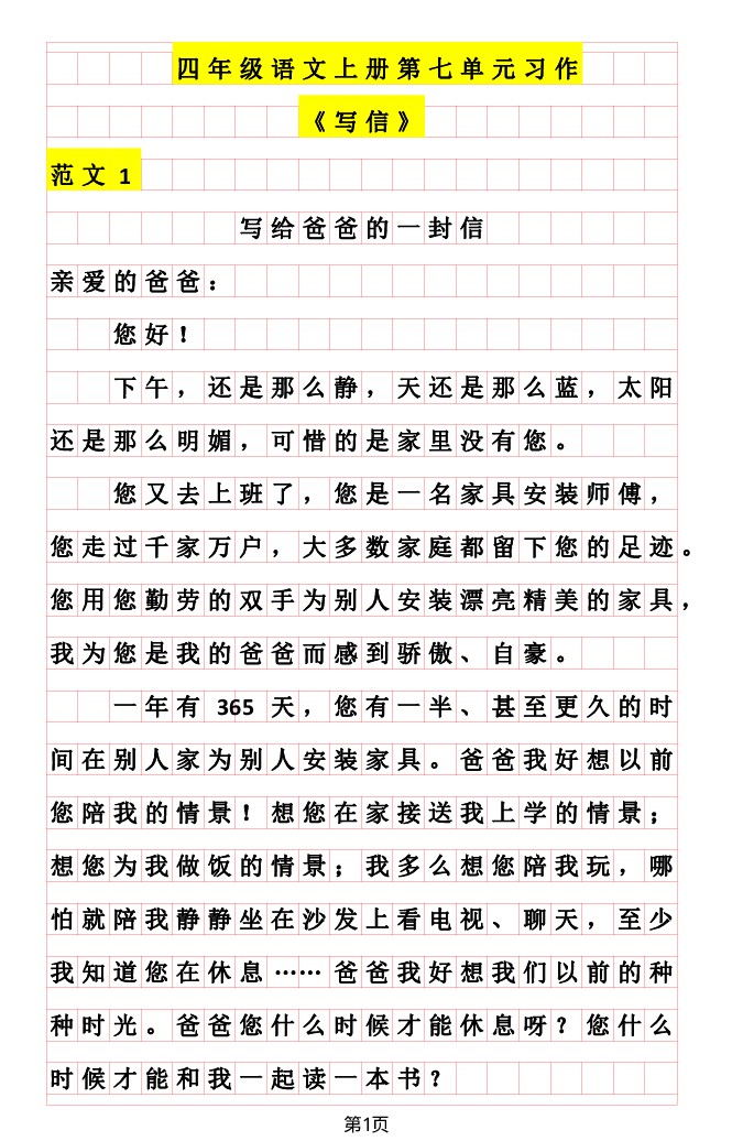 人教部编版四年级语文上册第7单元同步作文:写信 写作指导+范文赏析+病文升格(学生版)-部编版语文四年级上册
