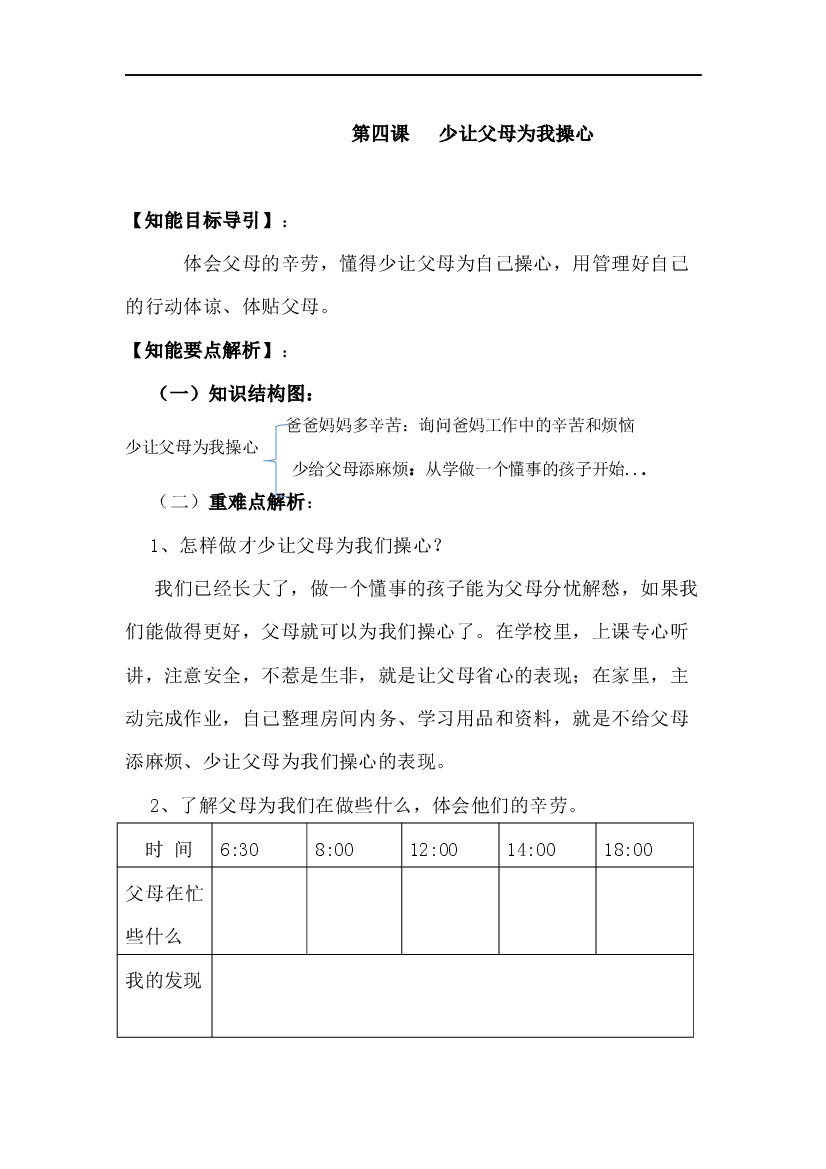 四上丨道法 第4课 少让父母为我操心(部编版)