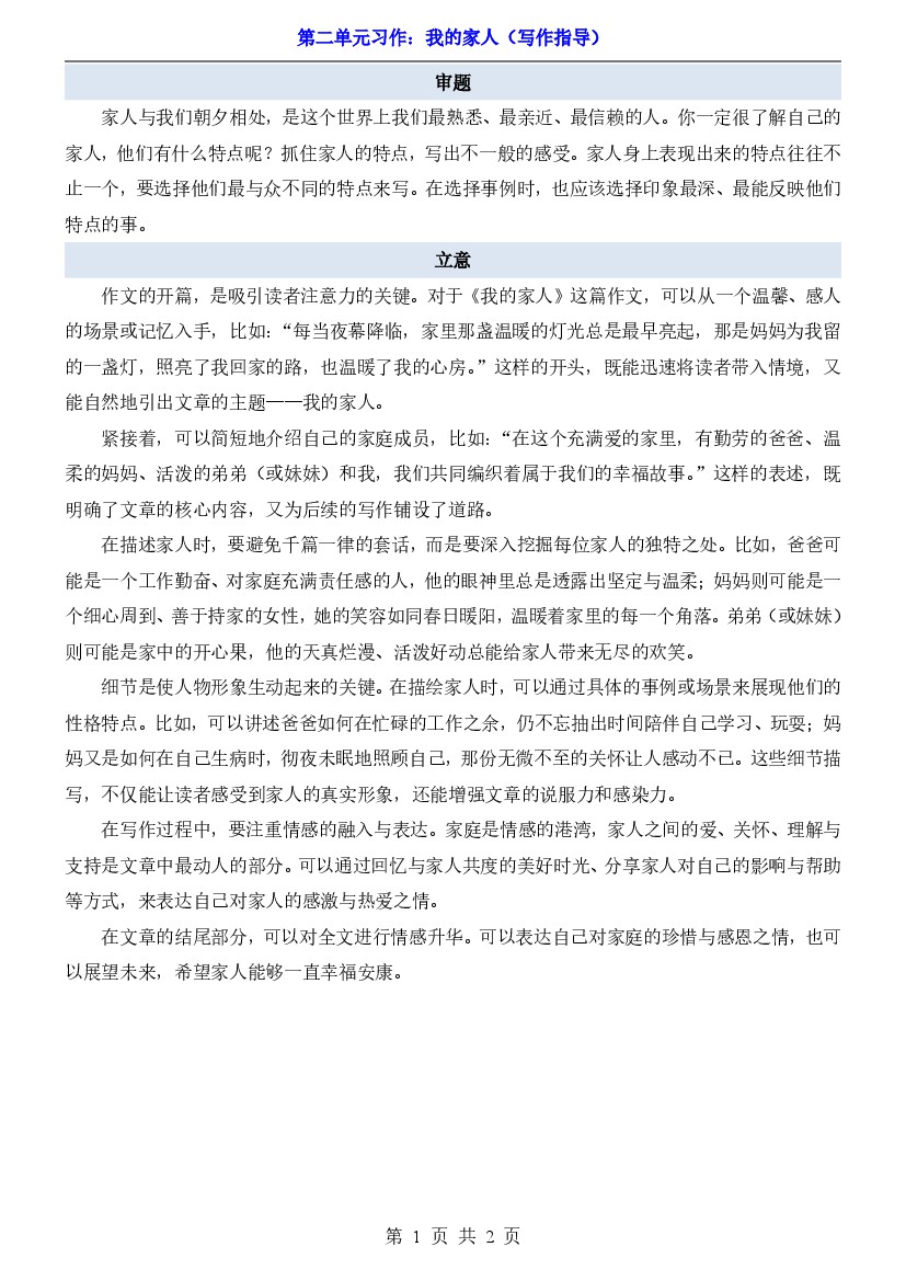 25年秋【四上语文】第2单元习作《我的家人》(写作指导)