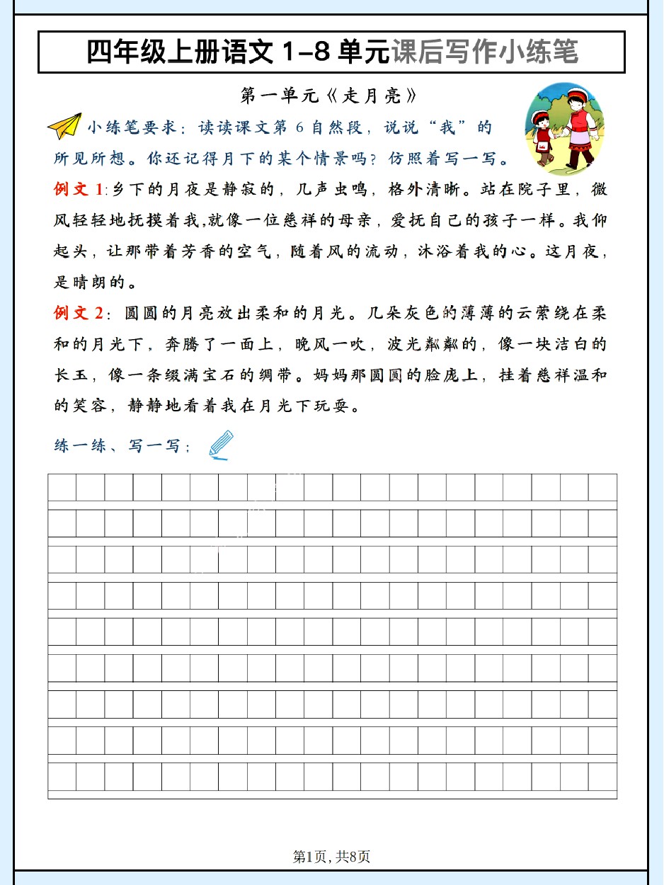 四上语文1-8单元习作思路步骤+重点提示+优秀范文(16页)