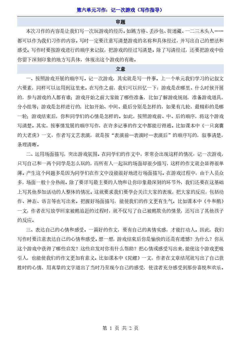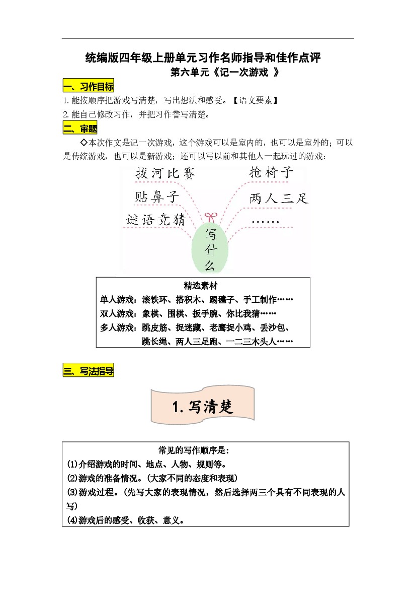 统编版语文四年级上册第六单元作文《记一次游戏》习作指导+习作范文