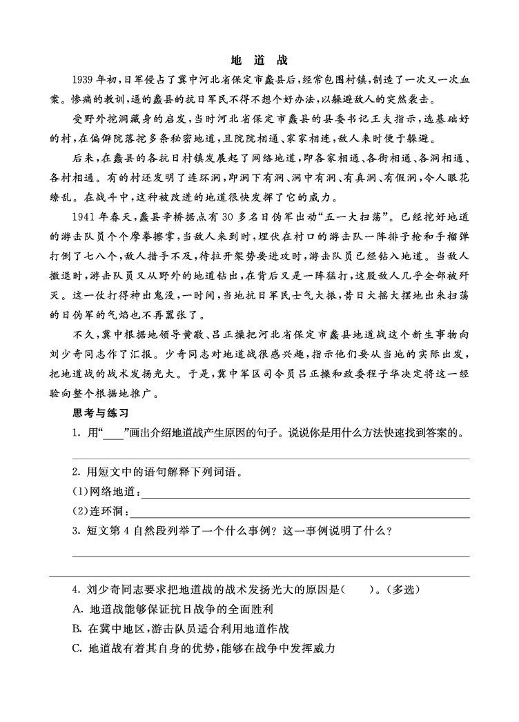 25年秋【五上语文】类文阅读2-8 冀中的地道战