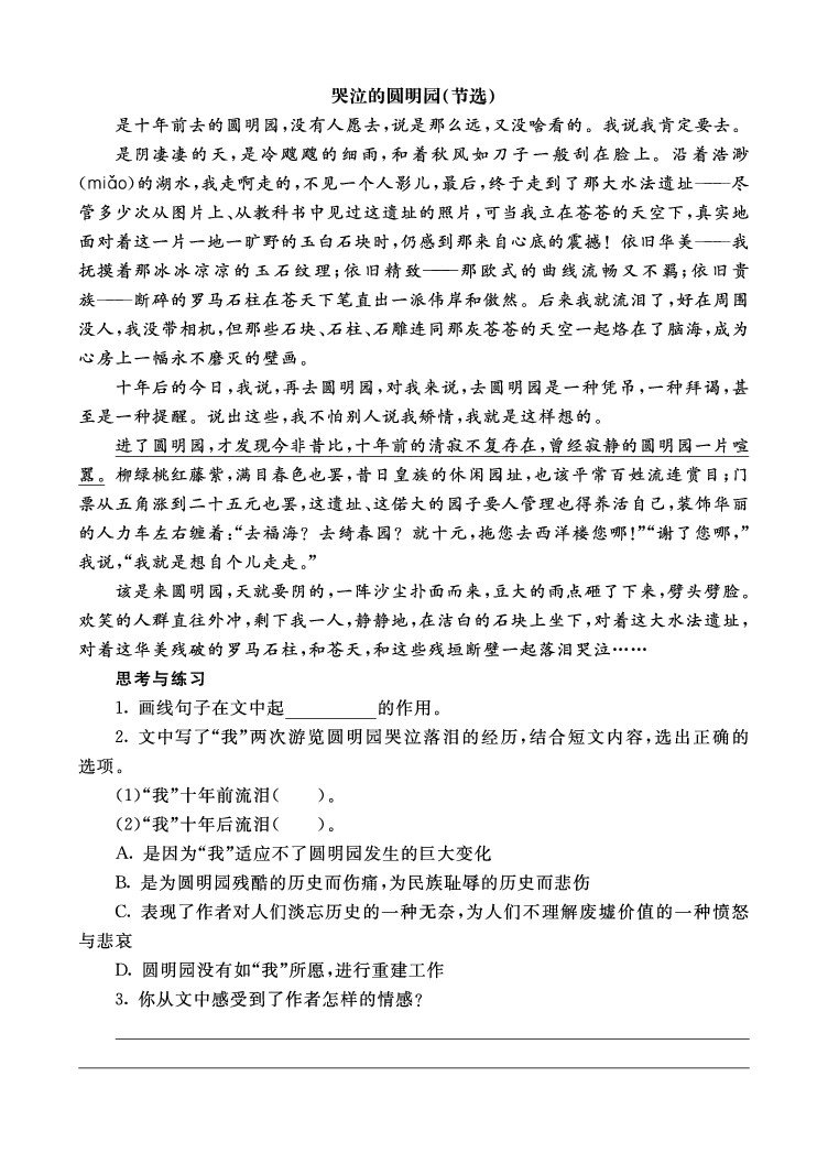 25年秋【五上语文】类文阅读2-14 圆明园的毁灭