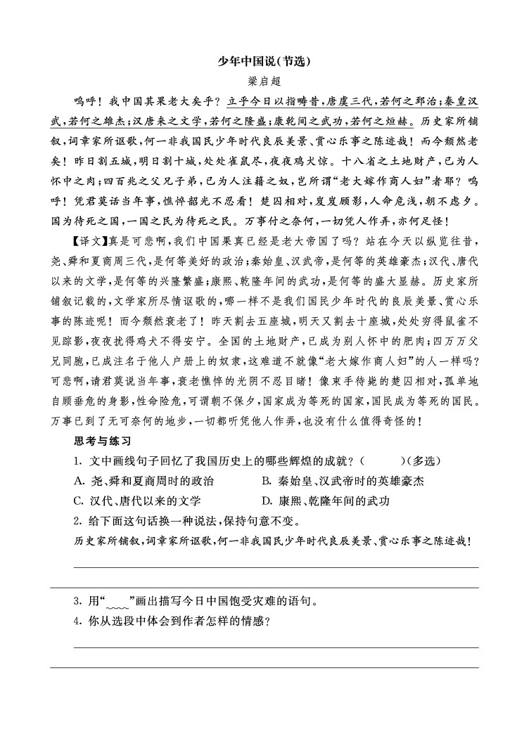 25年秋【五上语文】类文阅读2-13 少年中国说(节选)