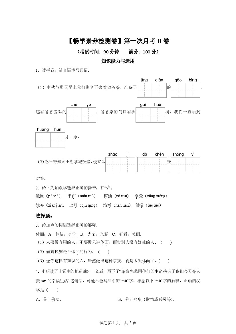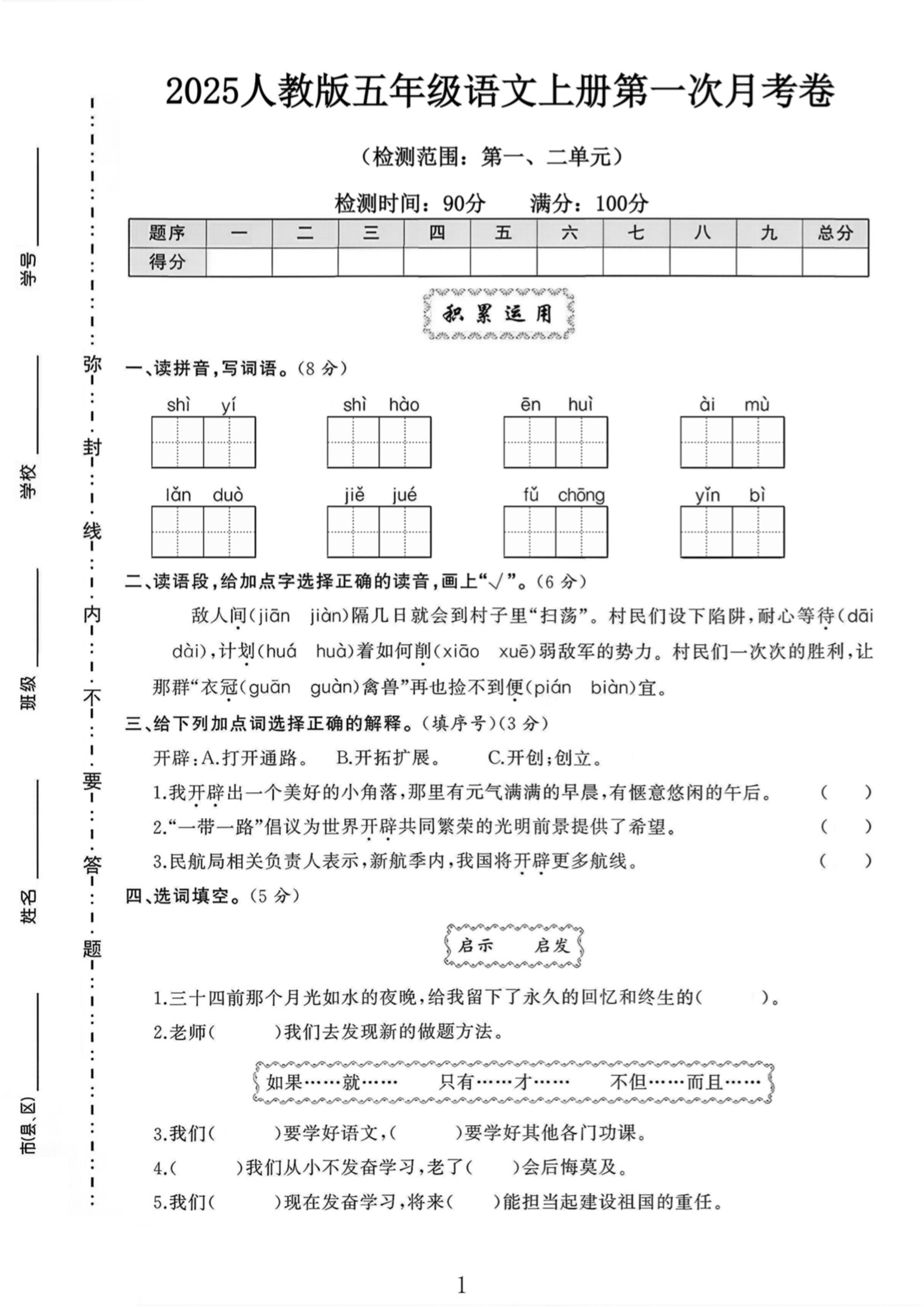 五年级语文第一次月考卷