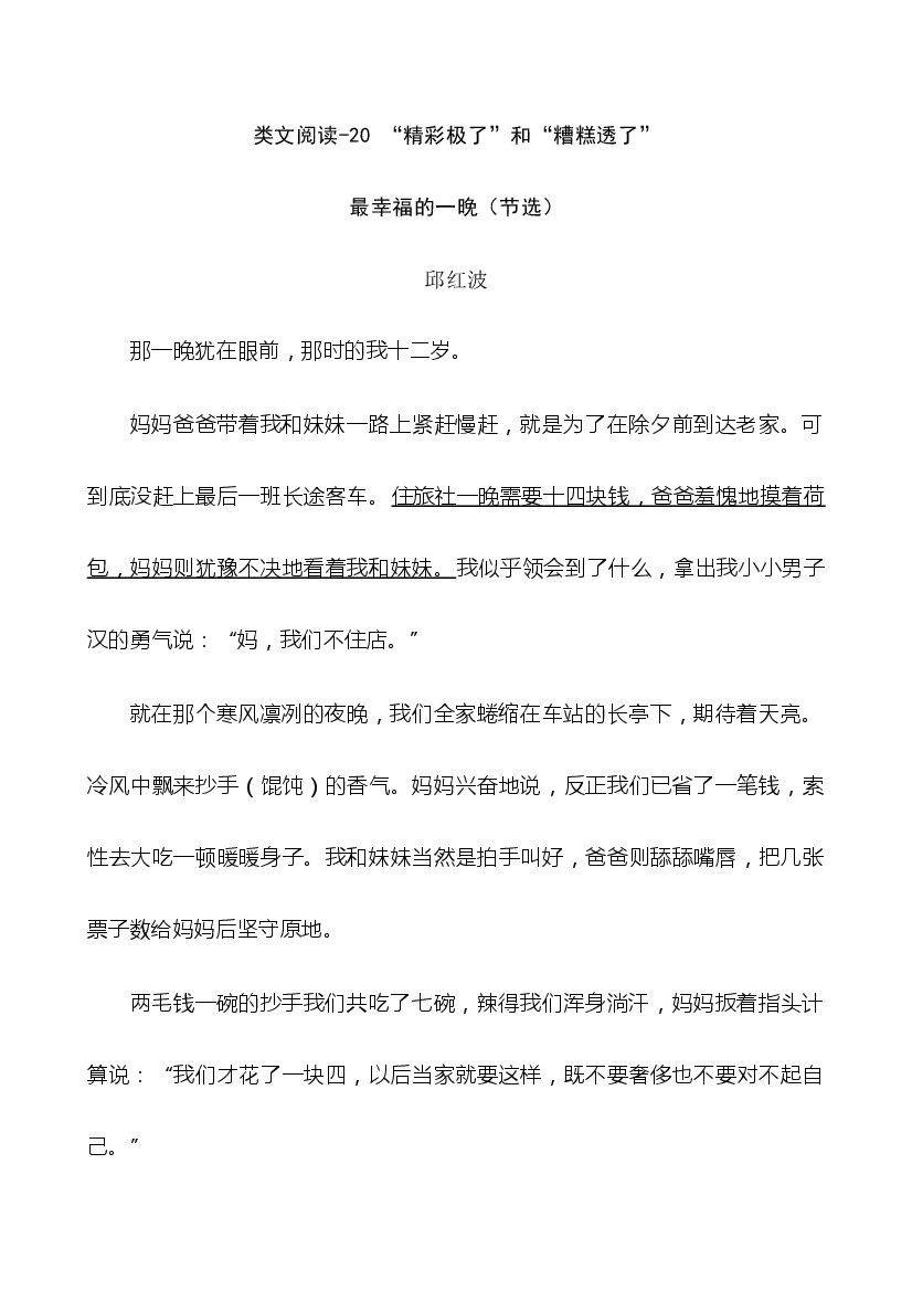 25年秋【五上语文】类文阅读1-20“精彩极了”和“糟糕透了”