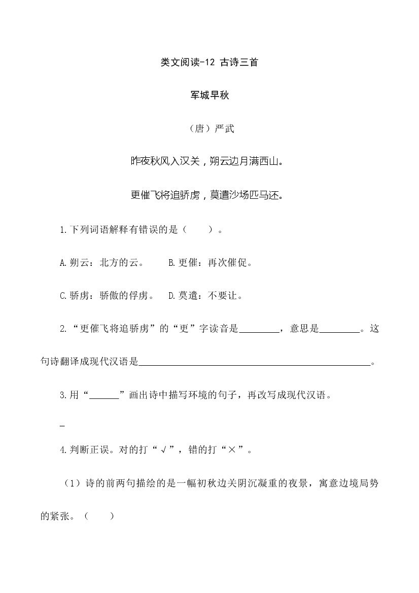 25年秋【五上语文】类文阅读1-12 古诗三首
