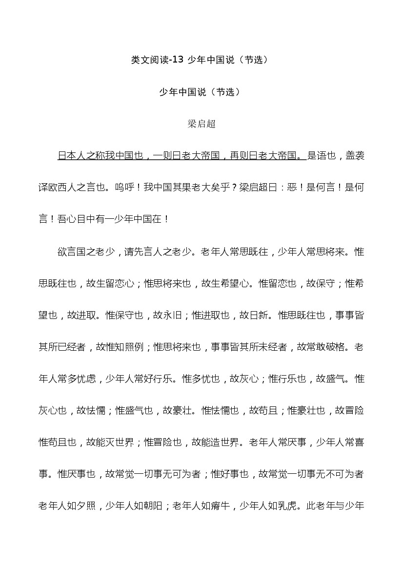 25年秋【五上语文】类文阅读1-13 少年中国说(节选)