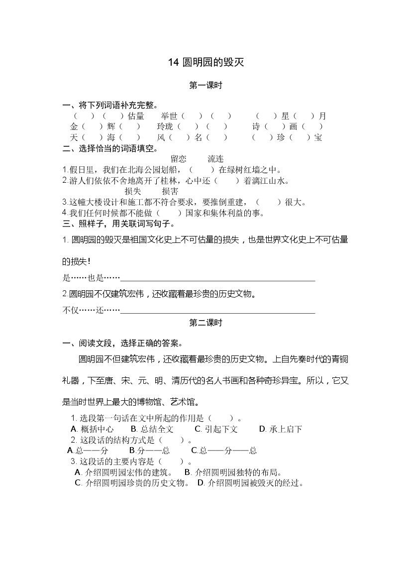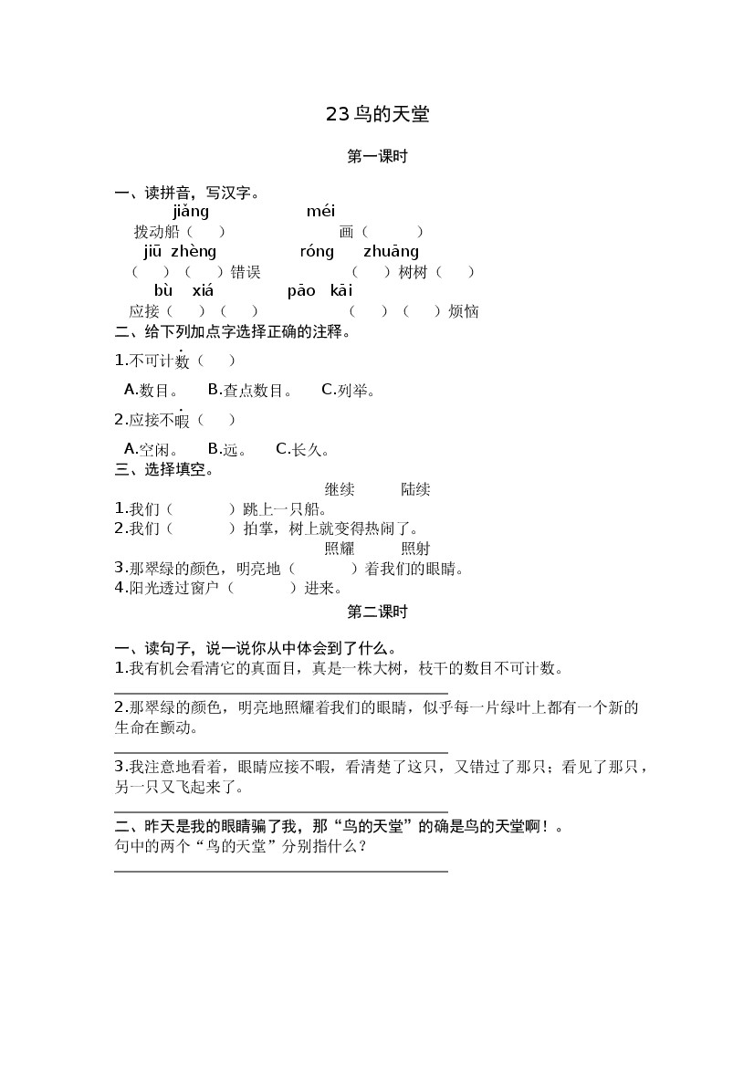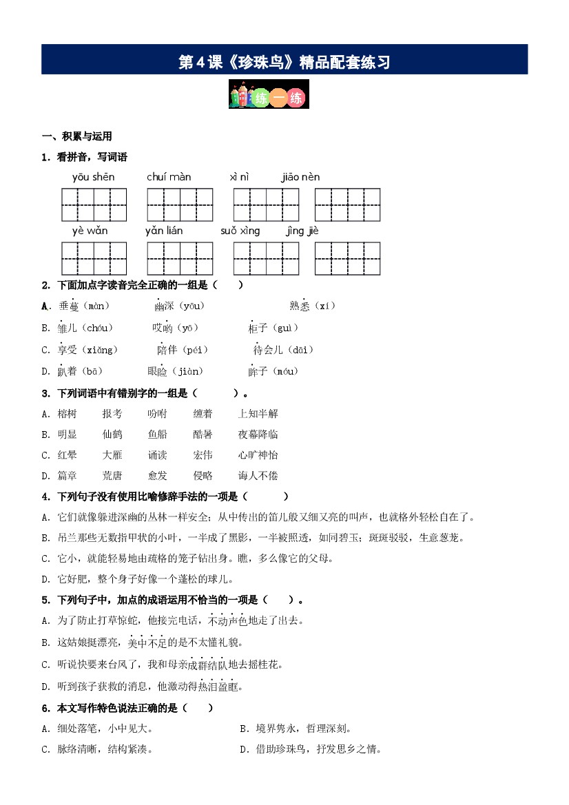 第04课《珍珠鸟》精品配套练习(基础+阅读)-部编版五年级上册