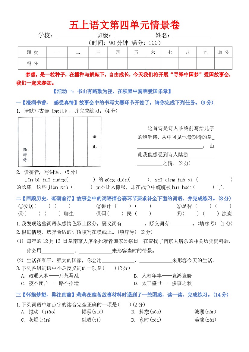 【精品】人教统编版五年级上册语文第五单元测试卷 (含答案)