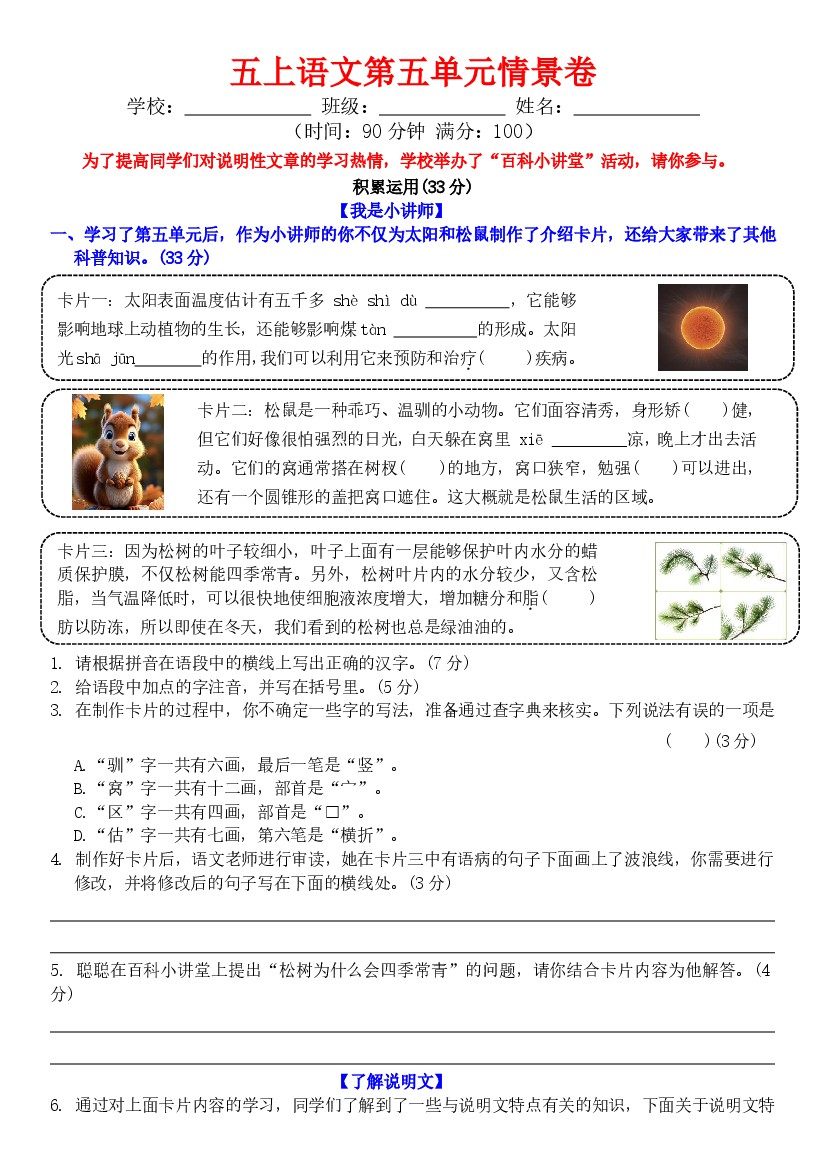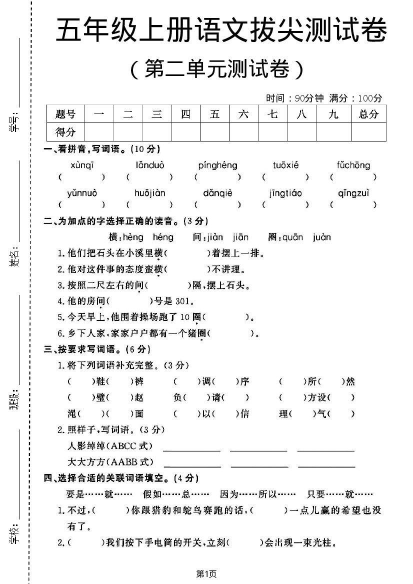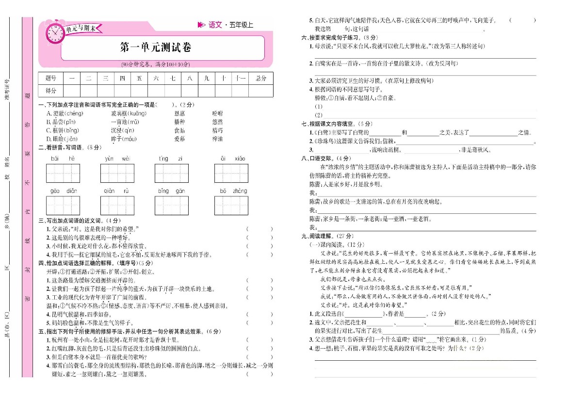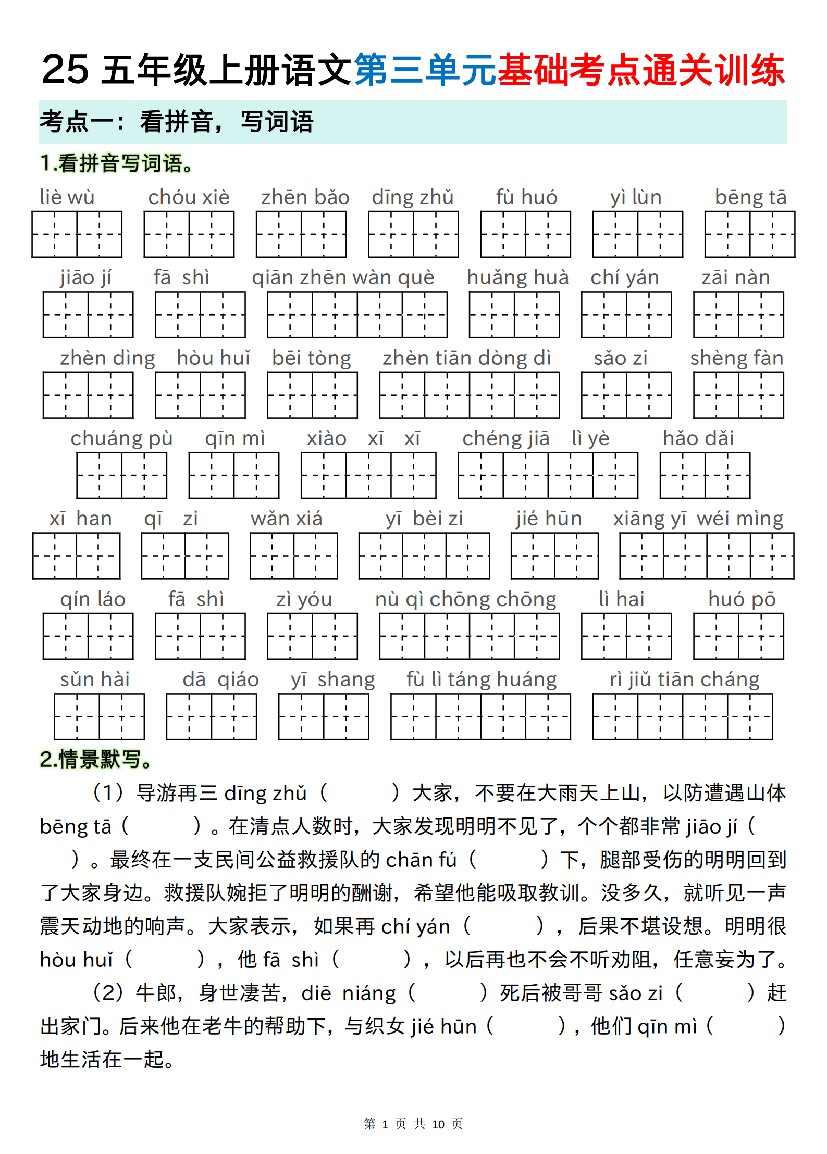 25秋五年级上册语文第三单元考点通关训练空白_.