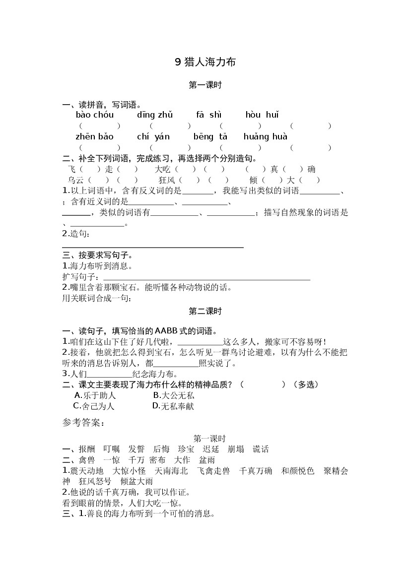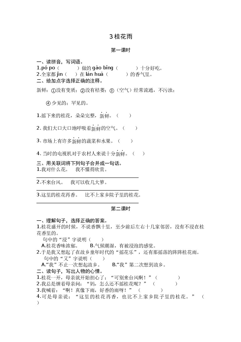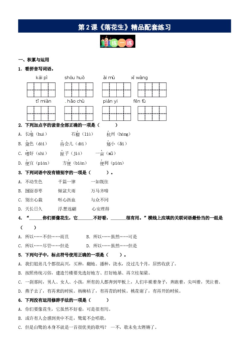 第02课《落花生》精品配套练习(基础+阅读)-部编版五年级上册
