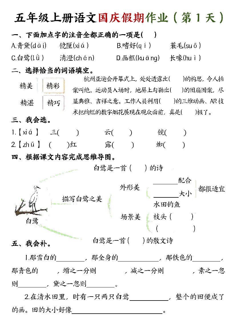 五年级语文上册单元作文能力提升(统编版)【技法+范文+素材】第七单元习作:________即景(技法+范文+素材)