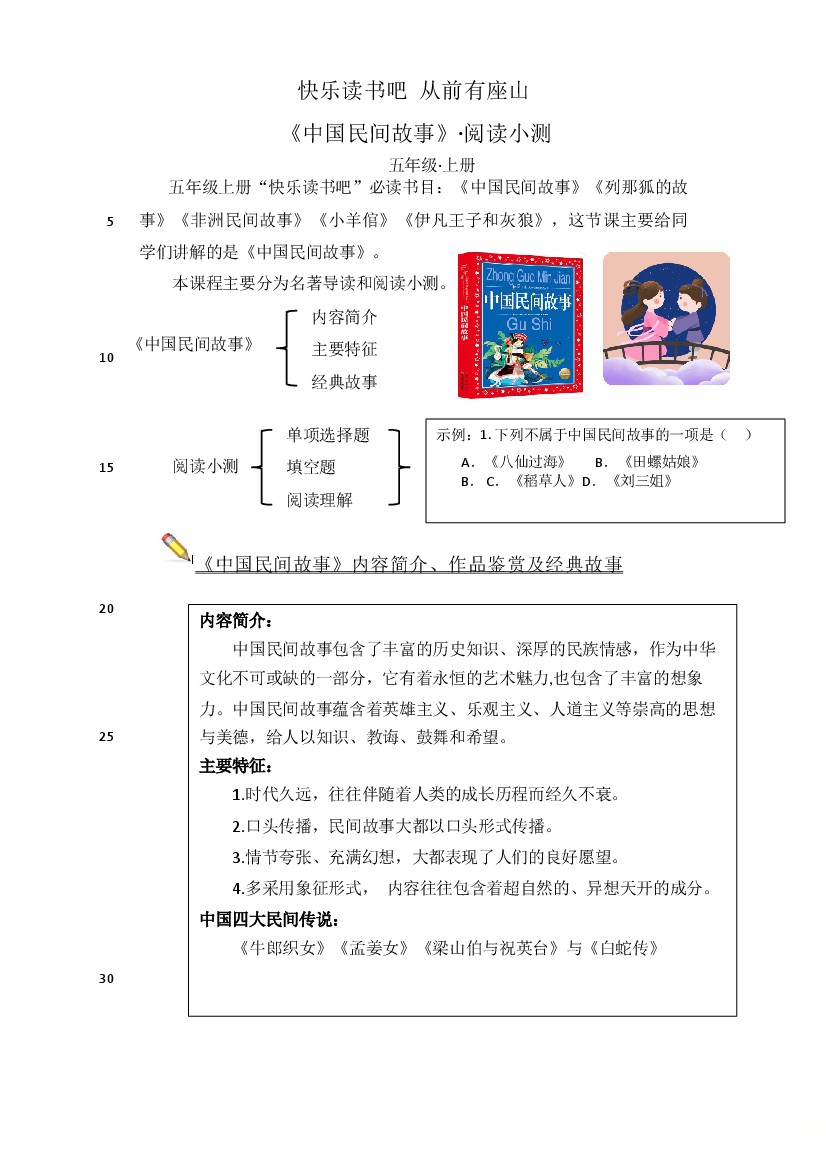 快乐读书吧:中国民间故事(专项训练)-2023-2024学年五年级语文上册(统编版)