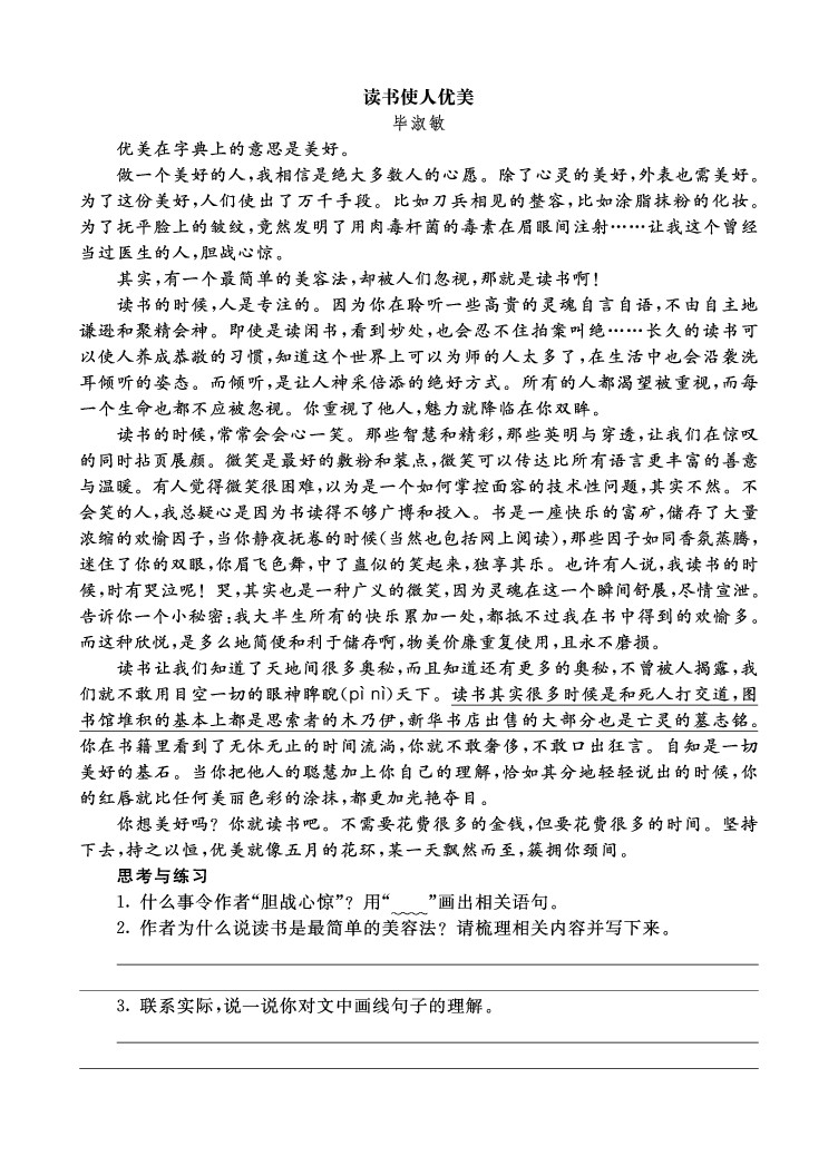 五年级(上)语文 第五单元主题同步阅读拓展训练