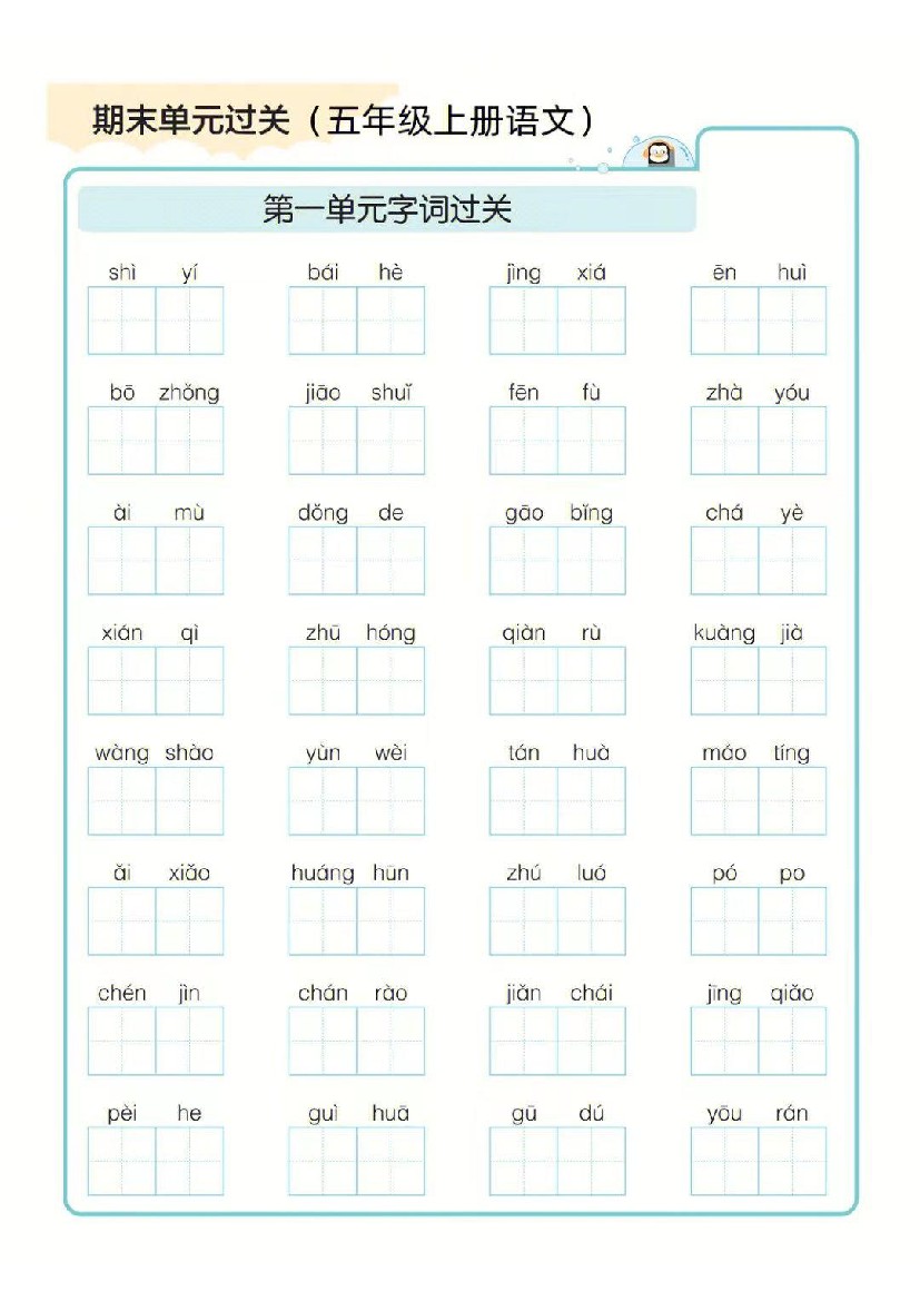 《字词过关训练》(5上)