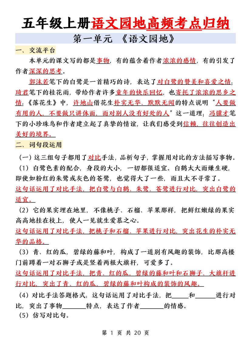 【语文园地重点归纳】五上语文