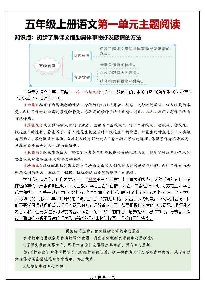 四升五年级上册语文全册重点内容归纳总结输出27页
