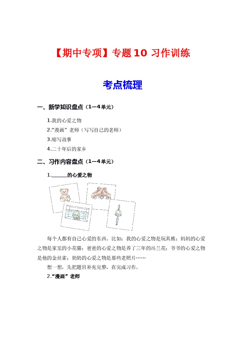 专题 10习作训练 (考点+试题)-2023-2024学年五年级语文上册期中专项复习(统编版)