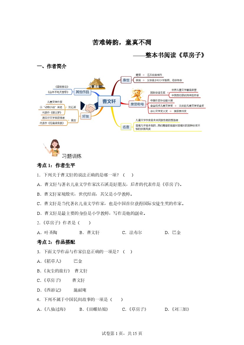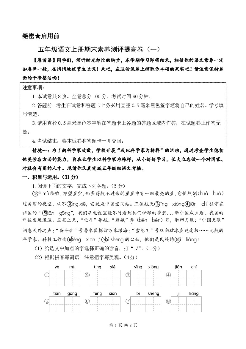 五上语文期末素养测评提高卷一(试卷+答题卡+答案解析32页)