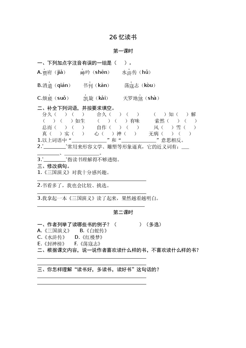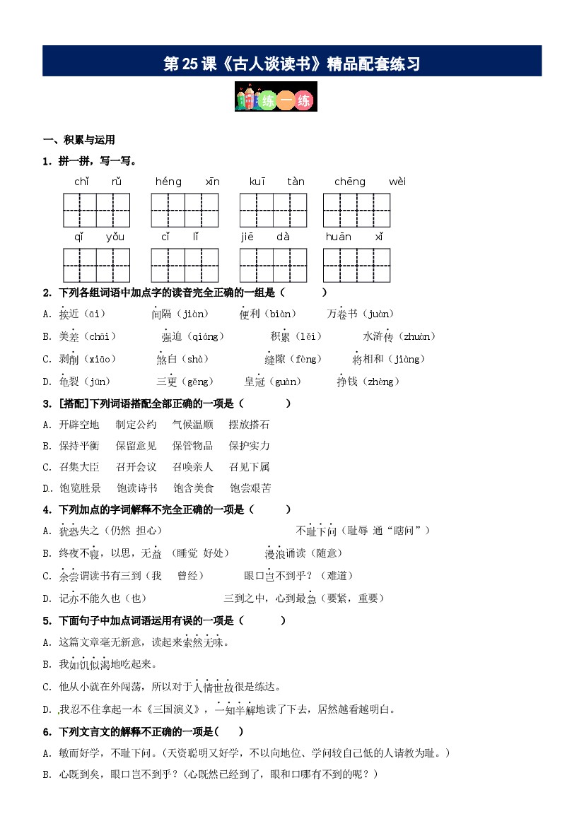 第25课《古人谈读书》精品配套练习(基础+阅读)-部编版五年级上册