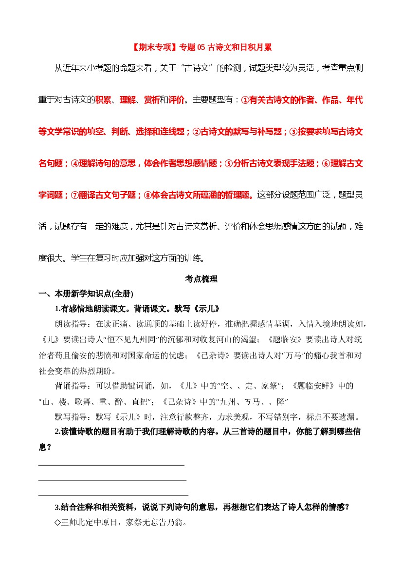 五年级上册语文期末专题复习-(5)--专题05 古诗文和日积月累