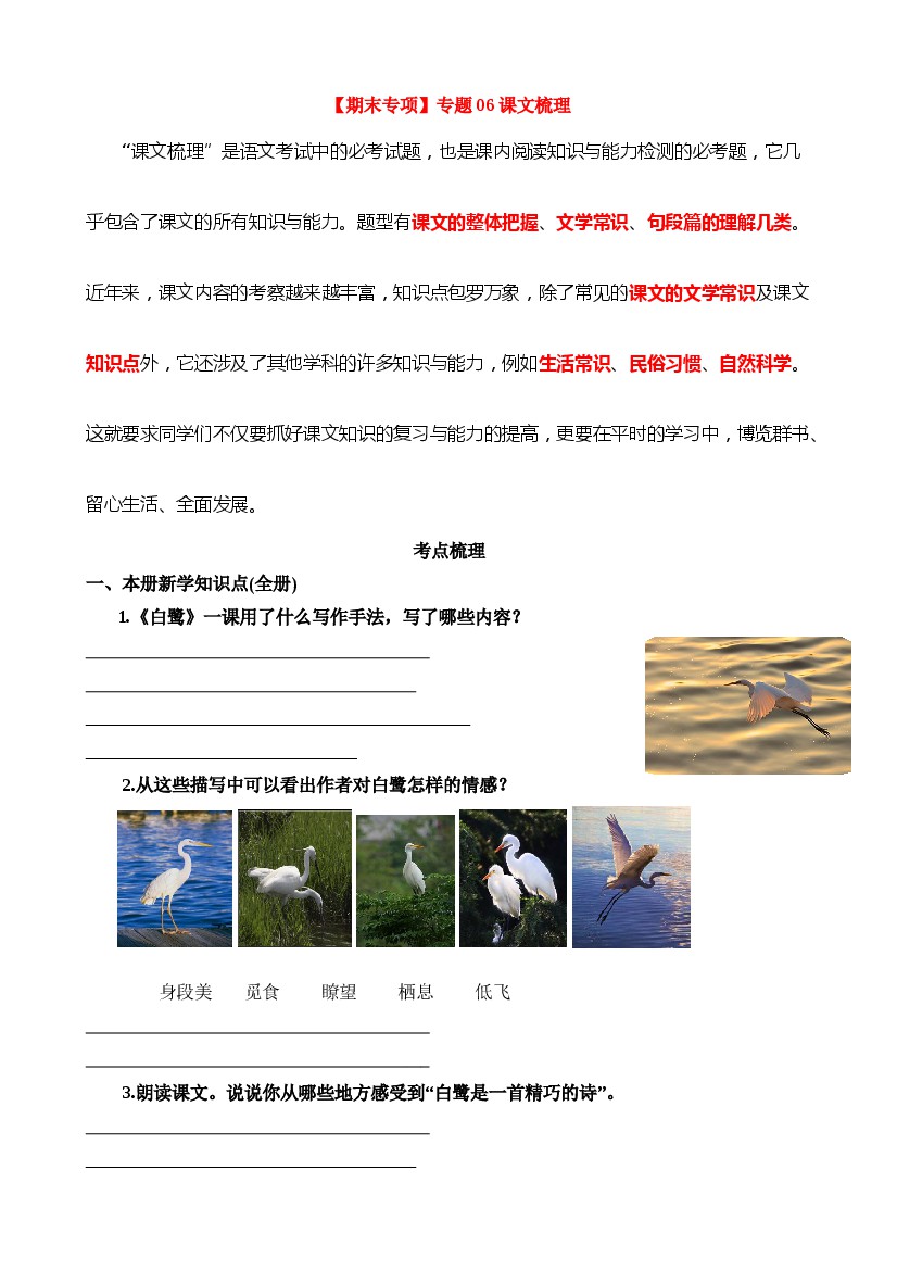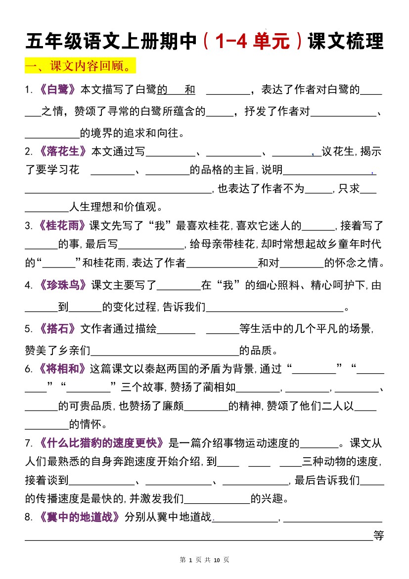 五年级上册语文期末专题复习-(6)--专题06 课文梳理