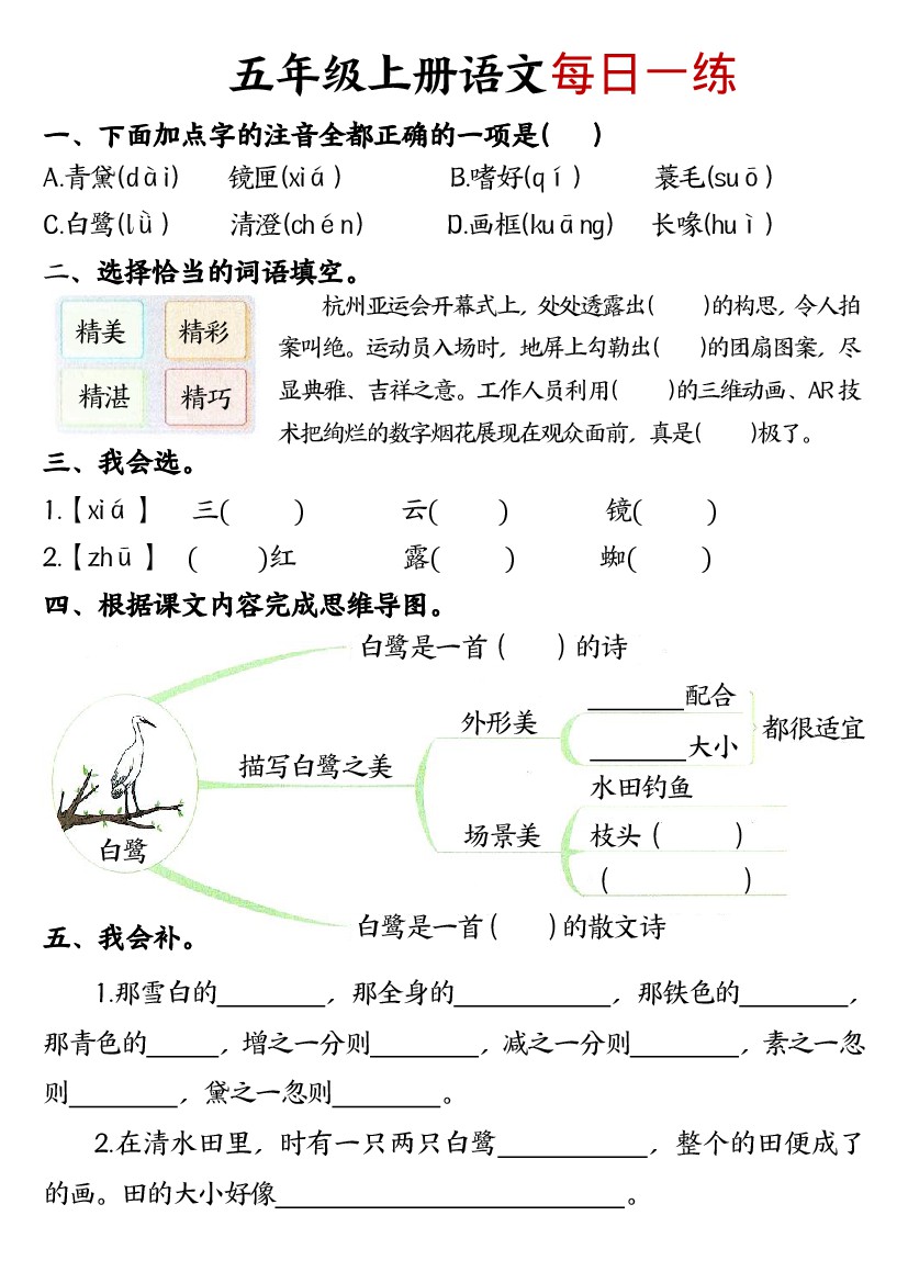 第24课《月迹》精品配套练习(基础+阅读)-部编版五年级上册