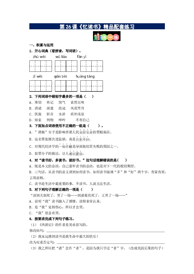 第26课《忆读书》精品配套练习(基础+阅读)-部编版五年级上册