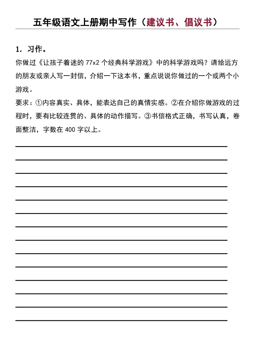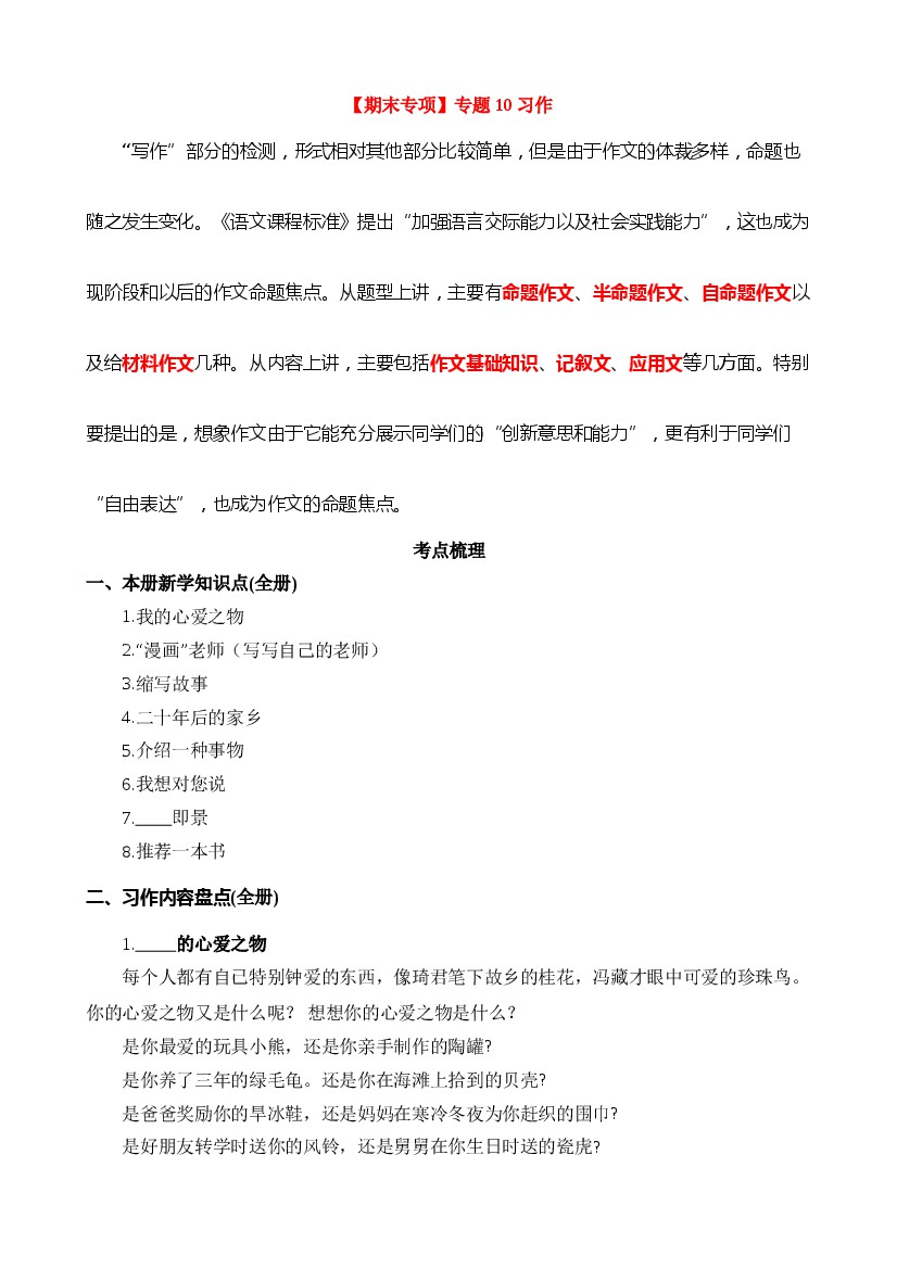 五年级上册语文期末专题复习-(10)--专题10 习作