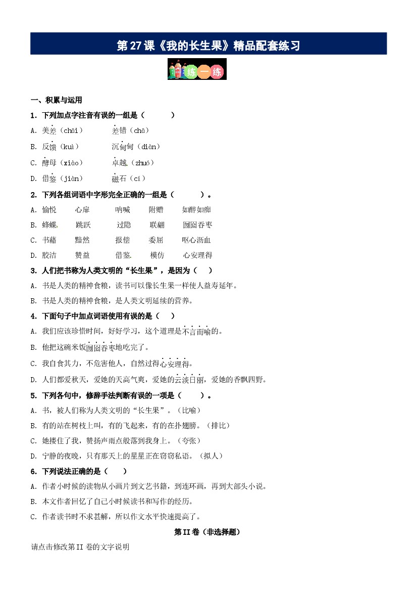 第27课《我的长生果》精品配套练习(基础+阅读)-部编版五年级上册