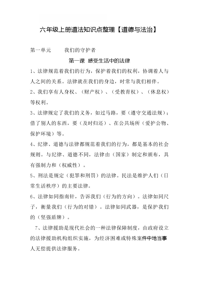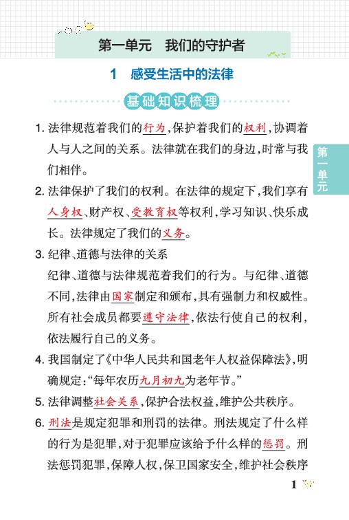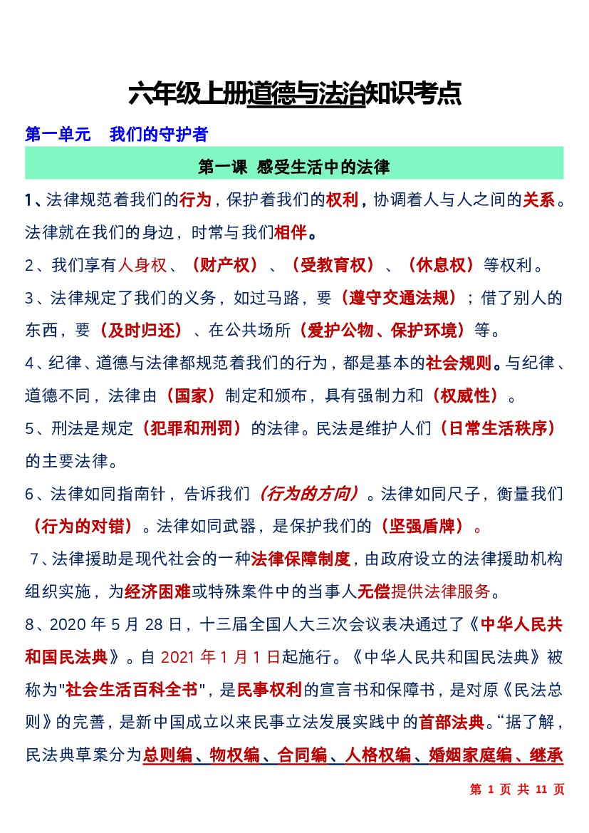 六上道法期中必背知识