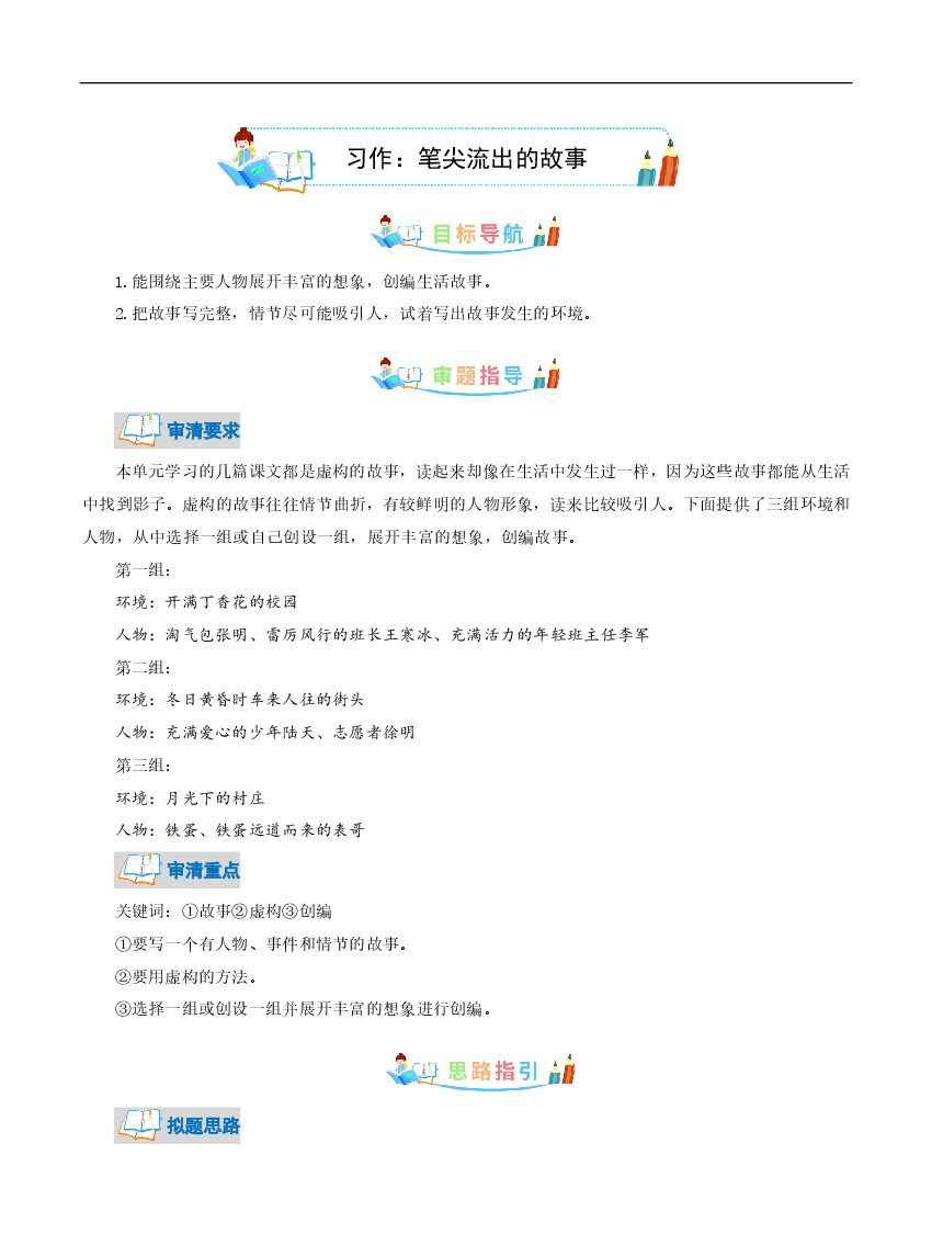 人教部编版六年级语文上册第4单元同步作文:笔尖流出的故事-写作指导+范文赏析+病文升格-部编版语文六年级上册